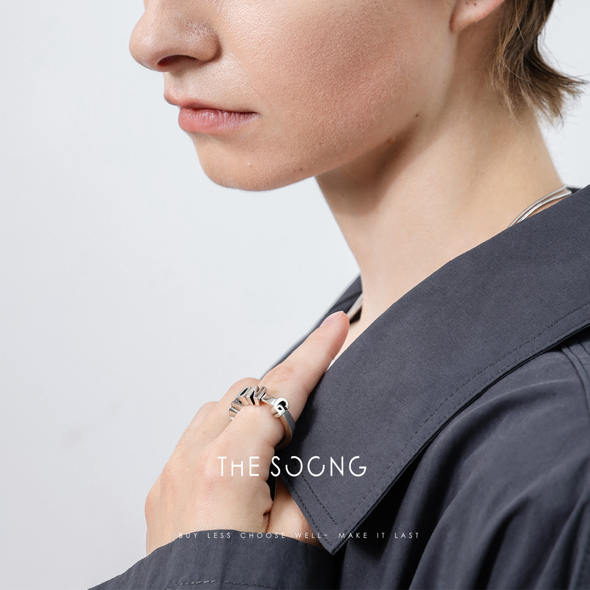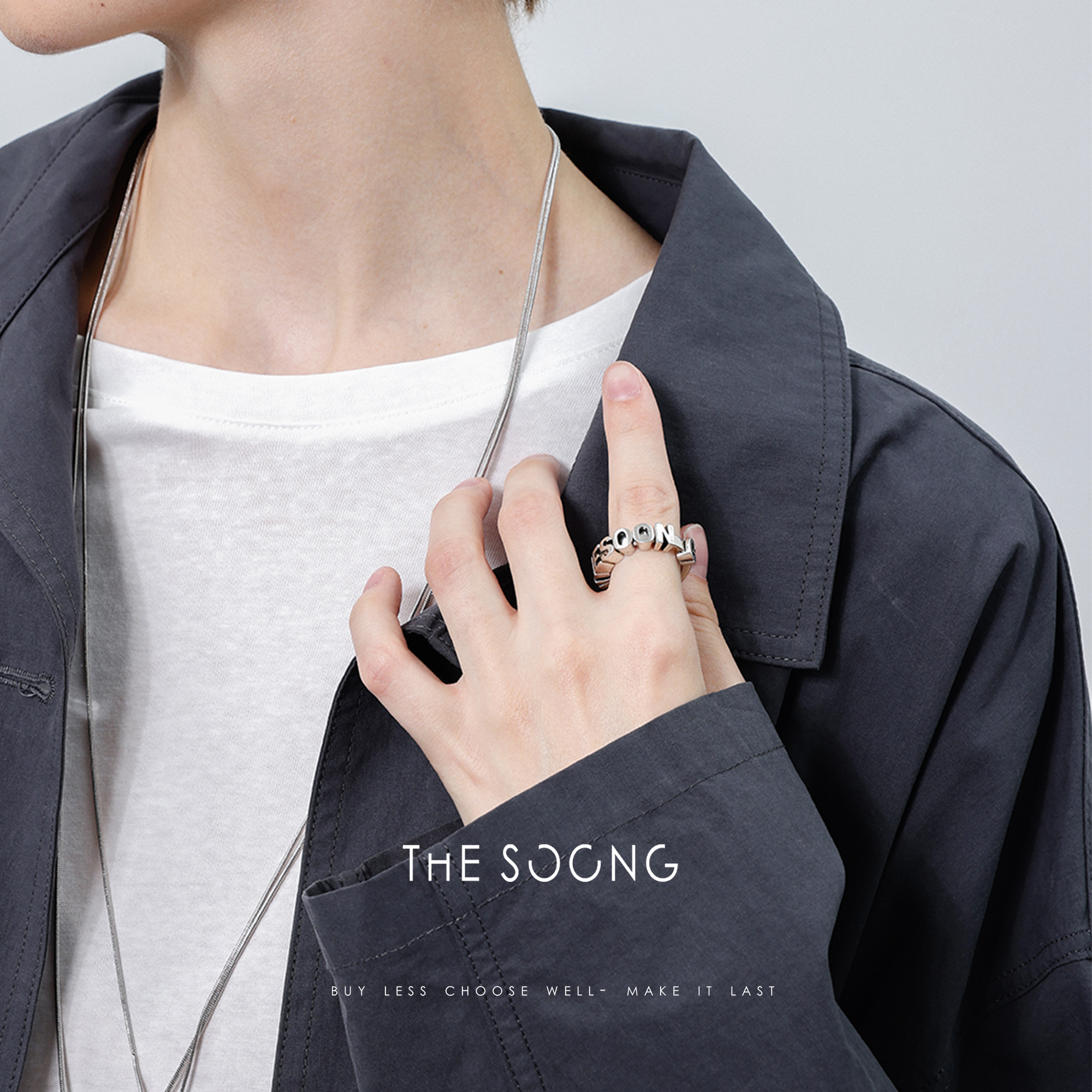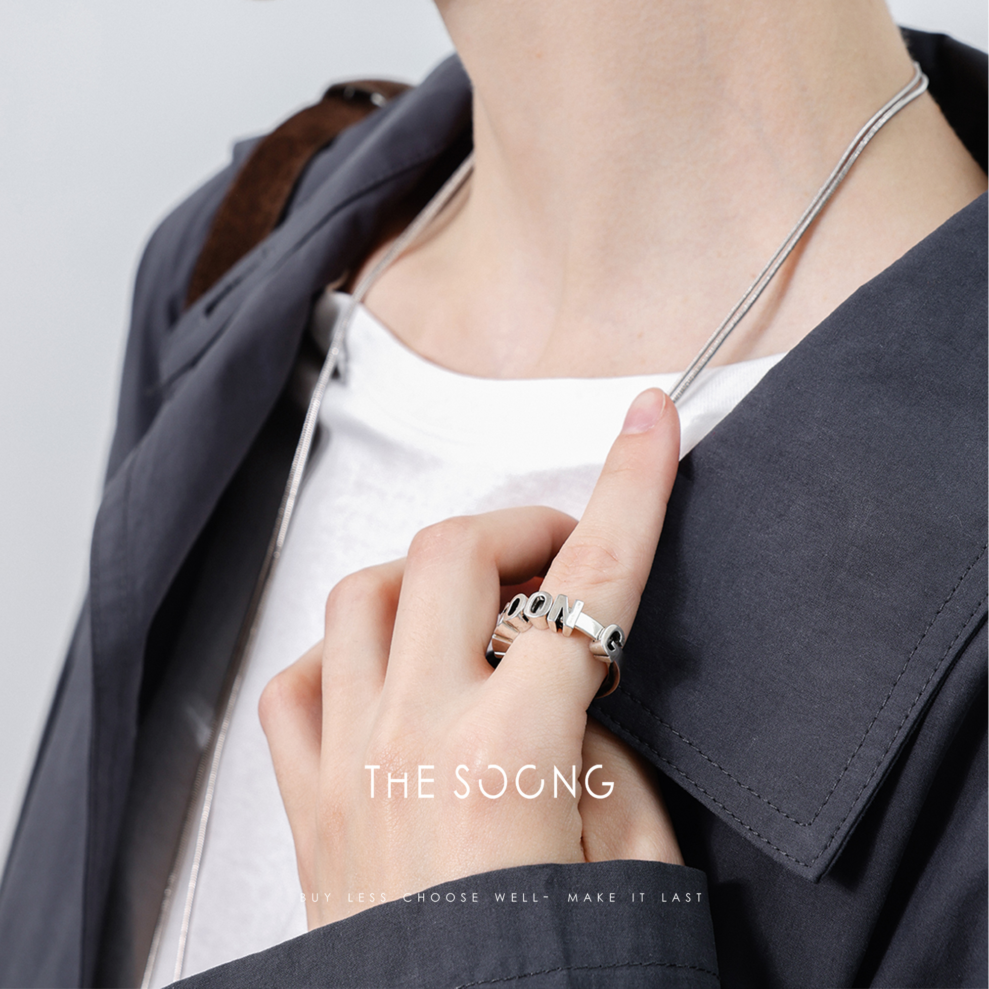 THESOONG/字母戒 新奇独特百搭饰品素雅银色做旧感精致食指铜戒