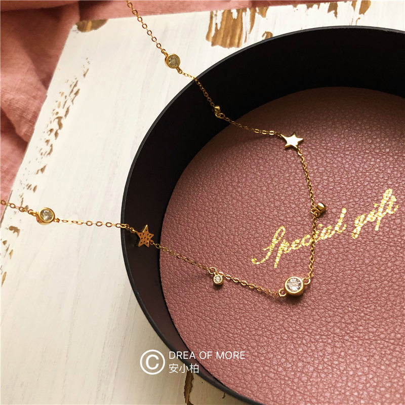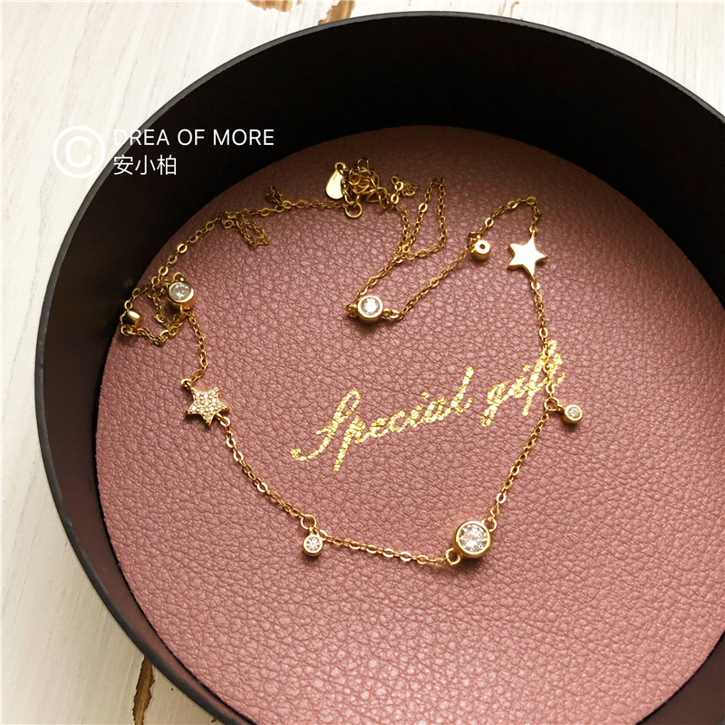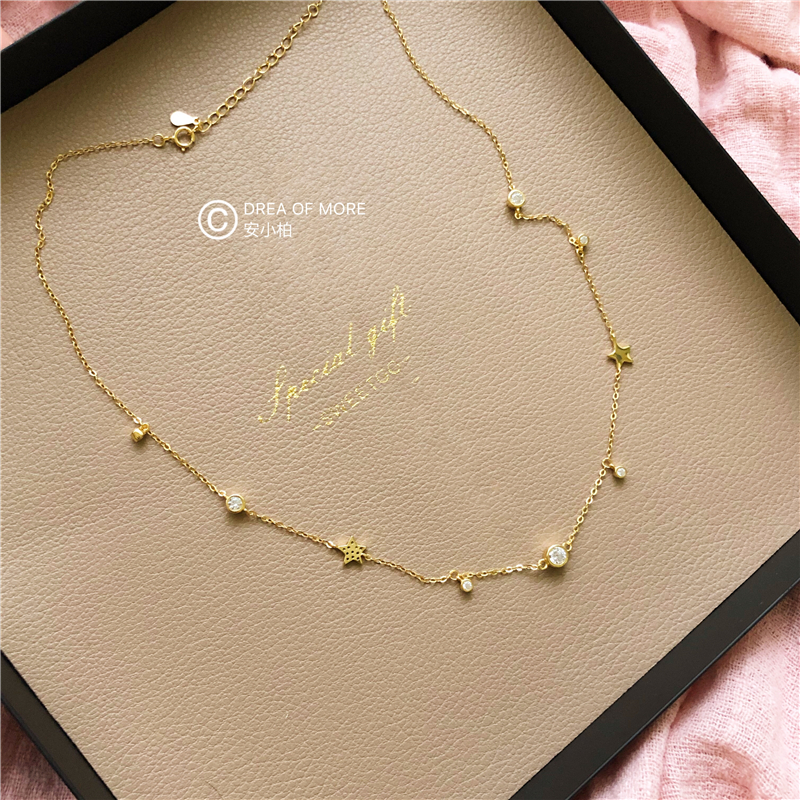 韩国东大门925纯银超仙五角星星水钻灵动锆石短项链锁骨链女百搭