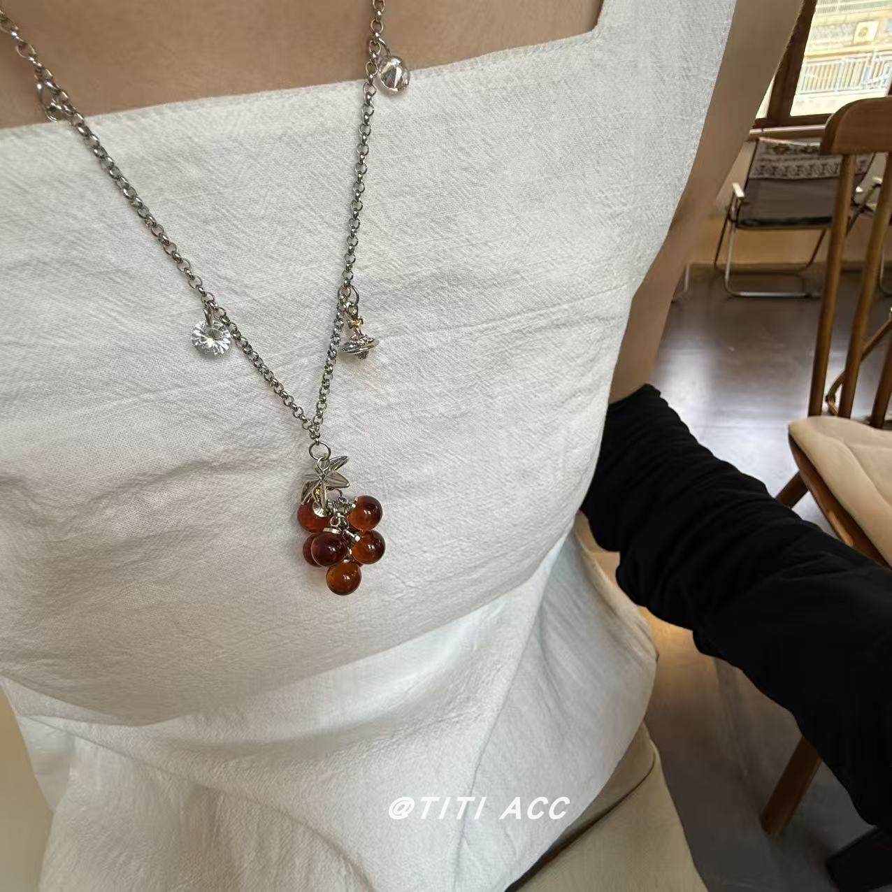 韩系透明石头串珠葡萄吊坠项链女小众设计气质锁骨链时尚百搭颈链