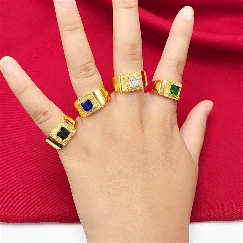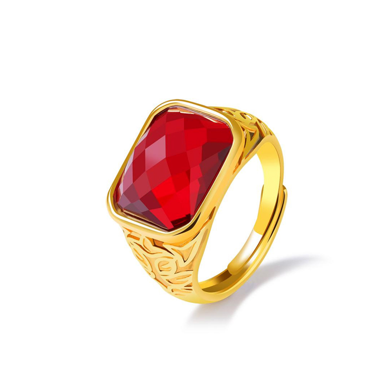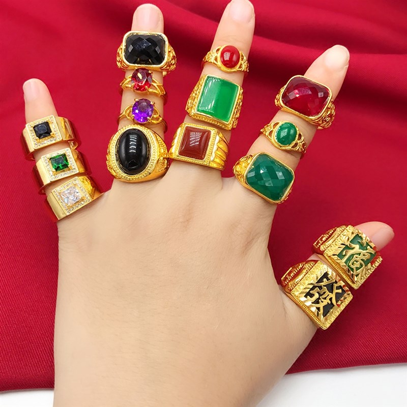 越南沙金c戒指男女士活口镀金玛瑙宝石戒指环福财发字个性潮男戒