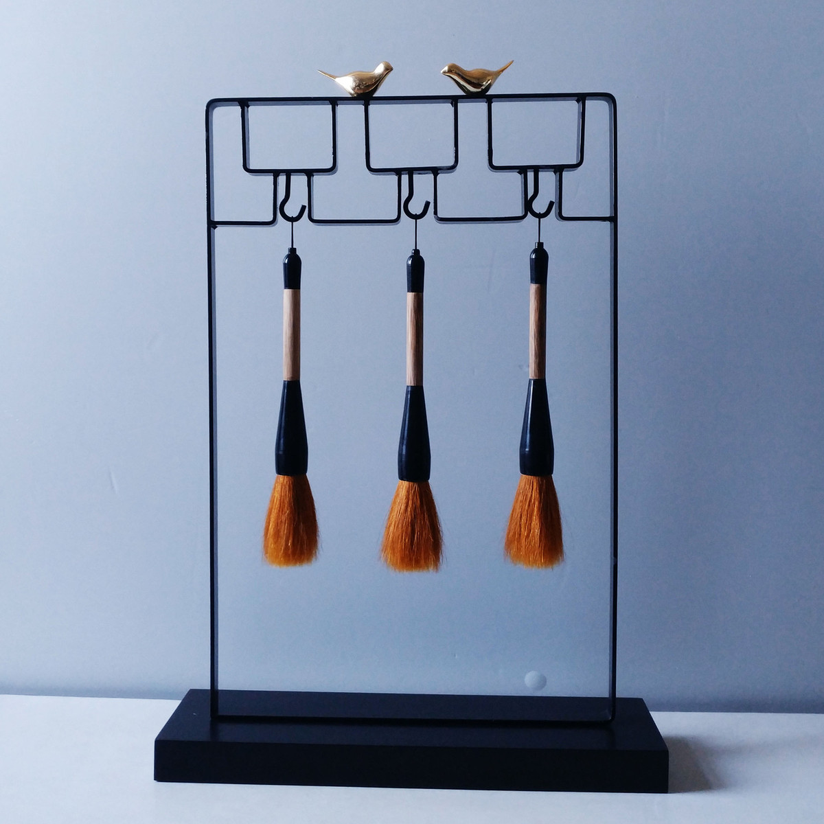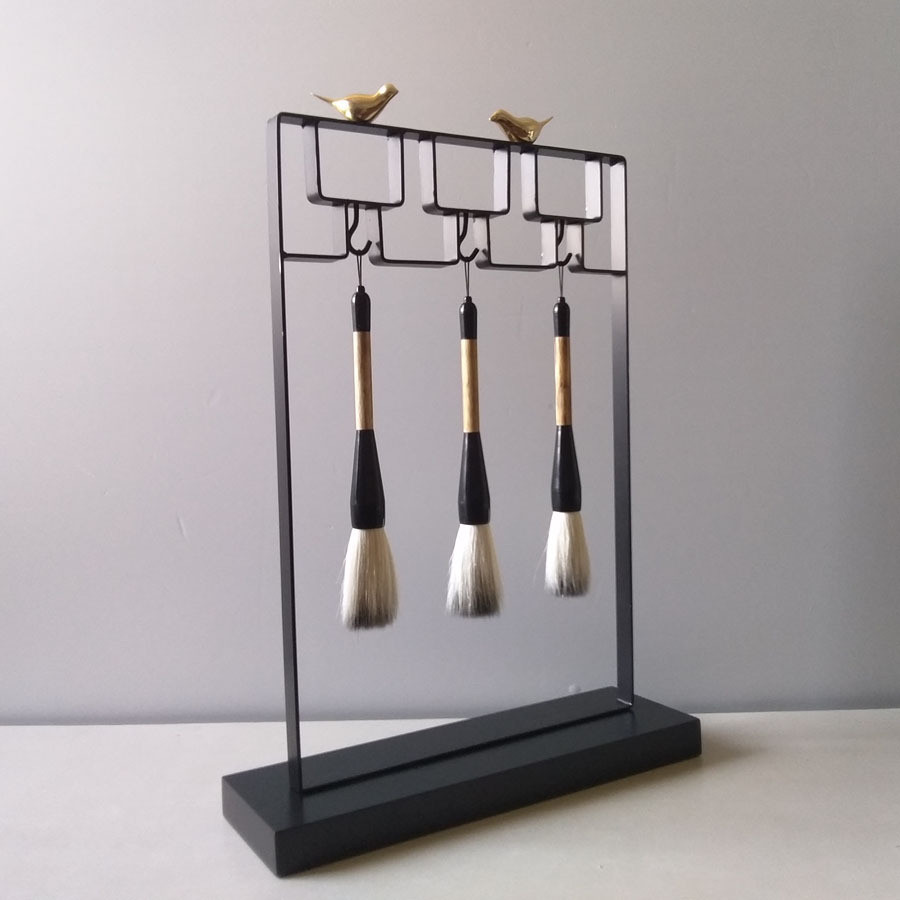 热销现货批发金属摆件铁艺三支笔新中式工艺品书房学校文化用品摆