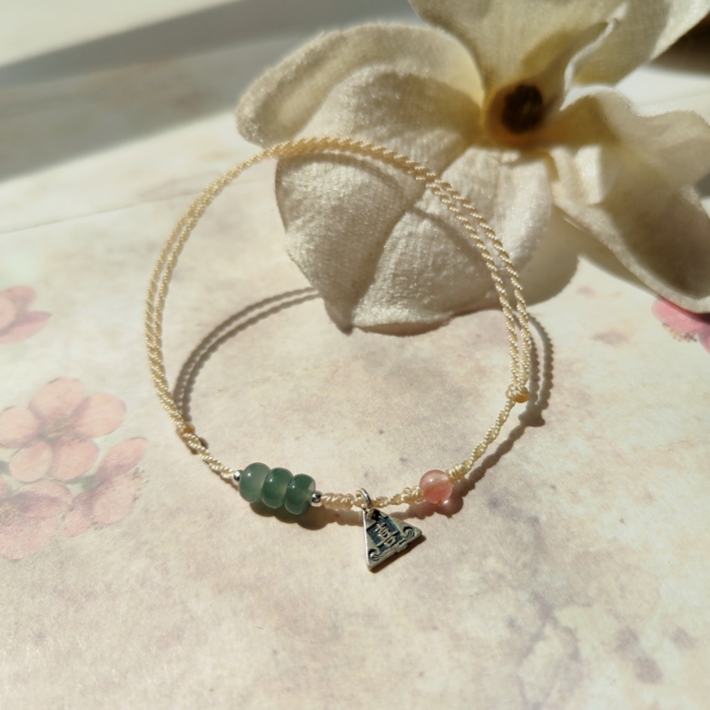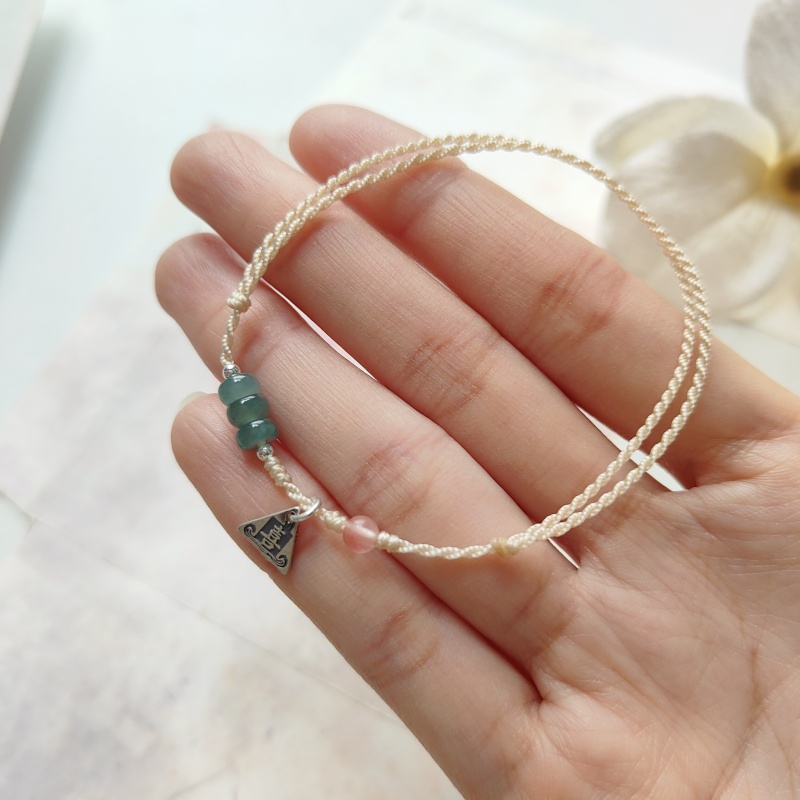 仲春 原创中国风清新复古晴水蓝925银喜乐牌女细小编织西瓜晶手绳