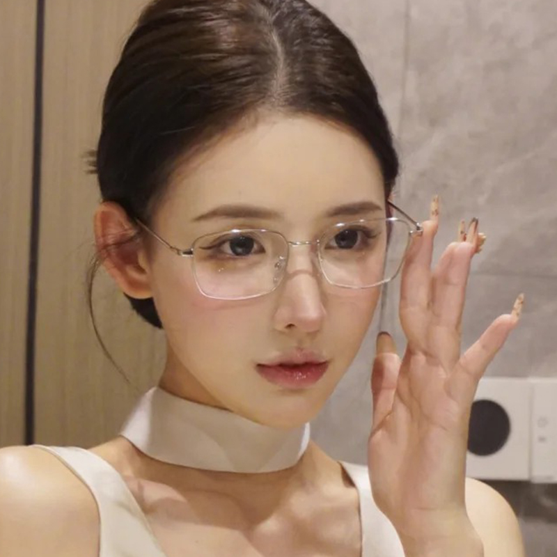 清冷高级感眼镜女纯钛银色小方框素颜超轻防蓝光钛架近视眼睛框架