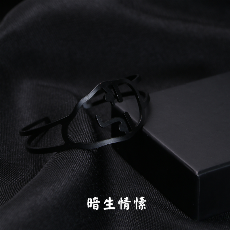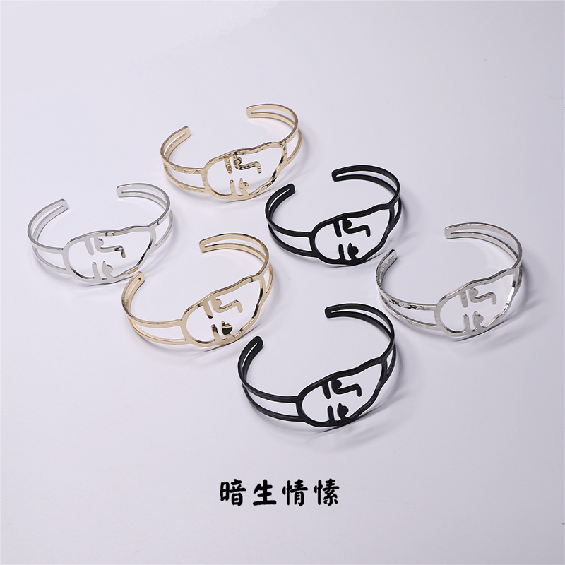 欧美时尚气质抽象镂空笑脸几何人脸合金镀金开口可调节手镯戒指女