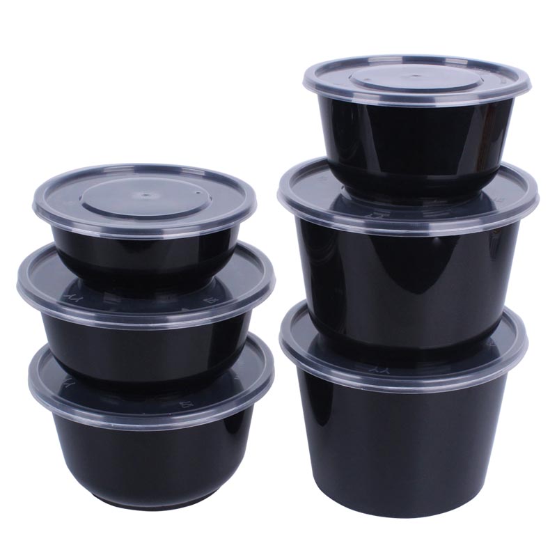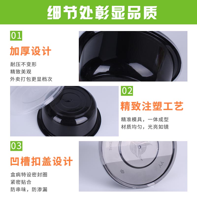 圆形1000ml一次性餐盒塑料打包碗黑色外卖打包餐具饭盒水果便当盒