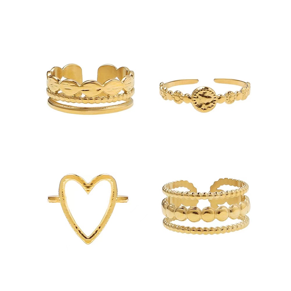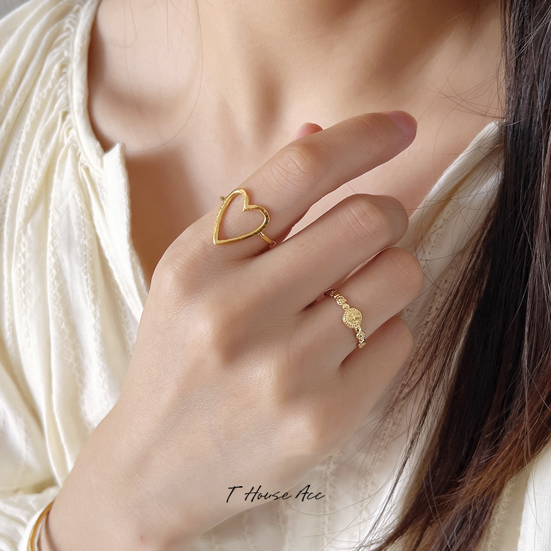 复古高级感宽版圆珠爱心可调节开口戒指小众设计高保色钛钢食指戒