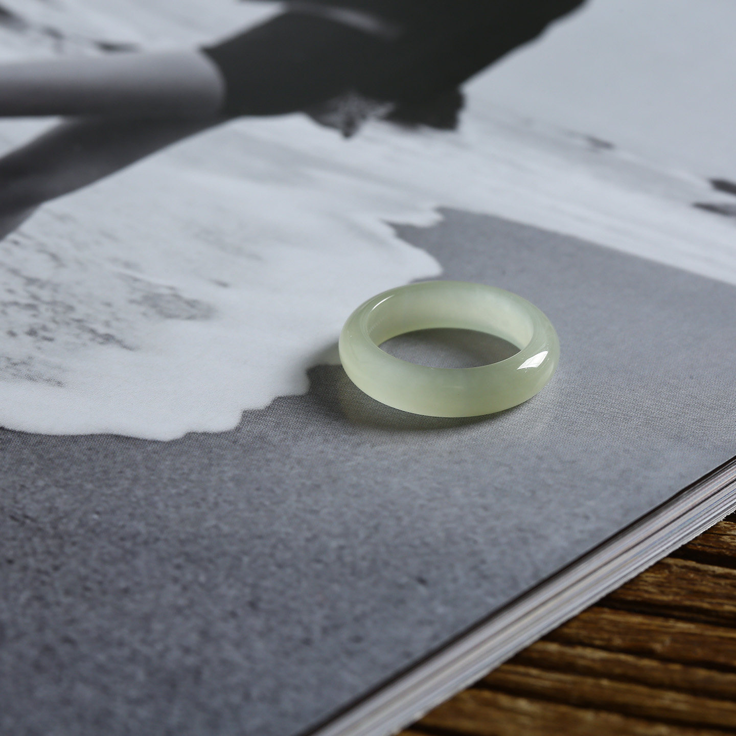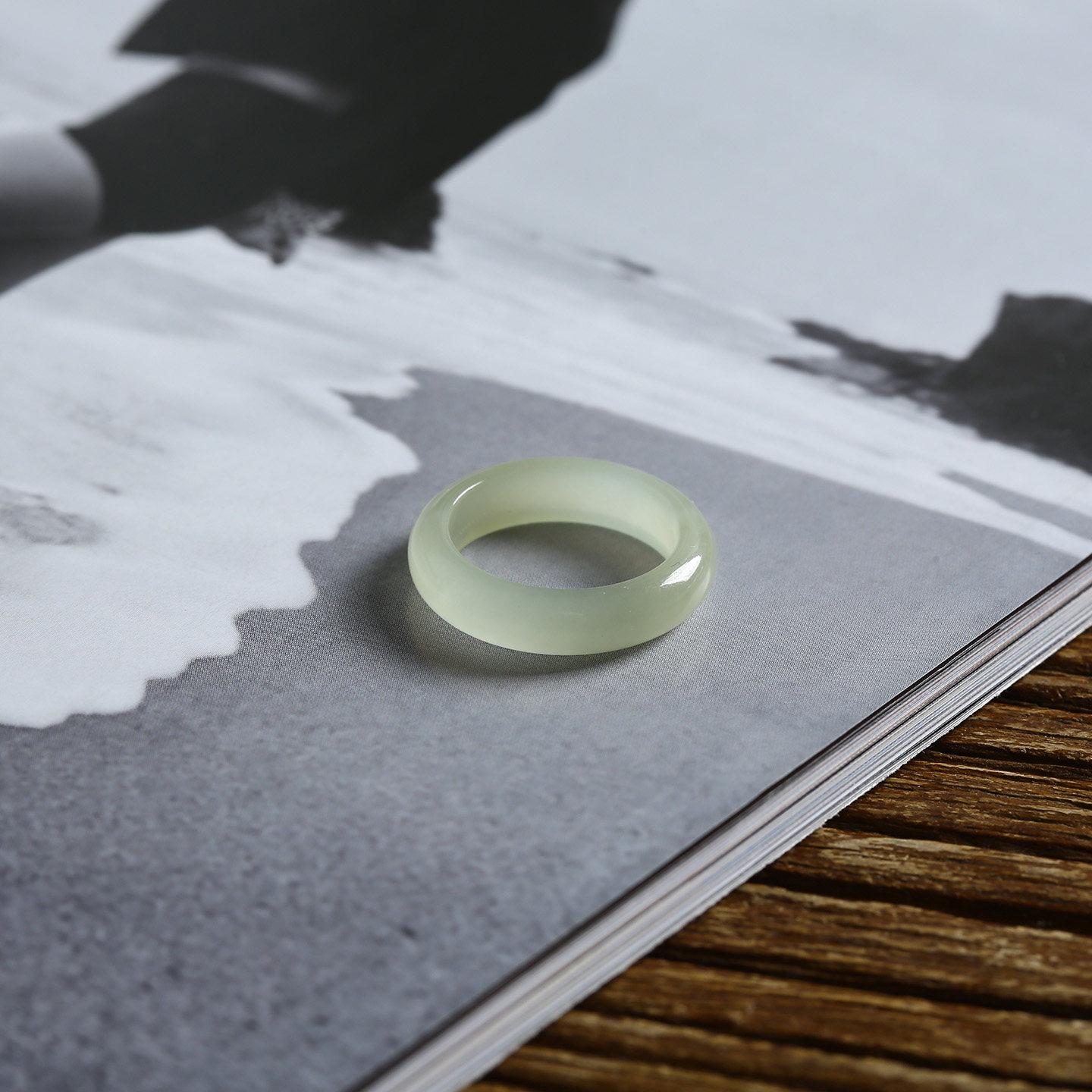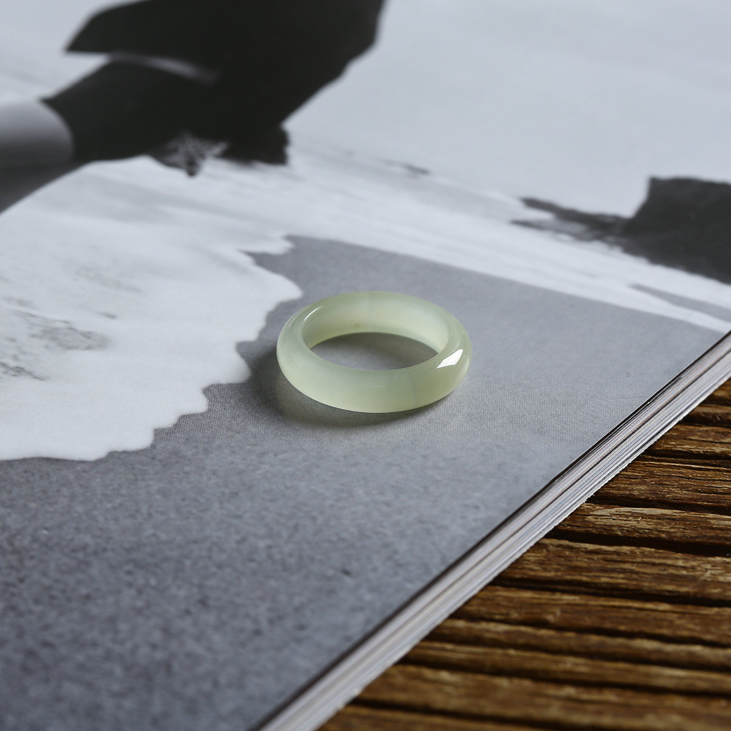 13号戒指 和田玉晴水青白泥鳅背圆弧素圈指环 9169