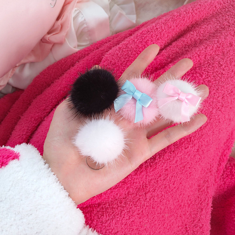 手作秋冬可爱水貂毛毛球戒指女气质甜美蝴蝶结少女Lolita开口指环