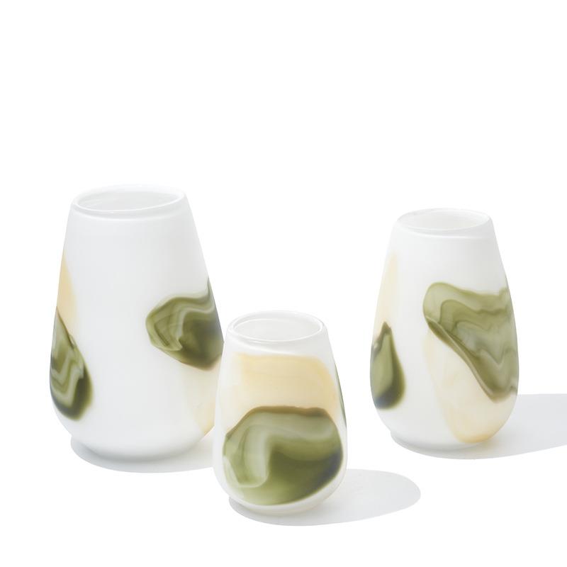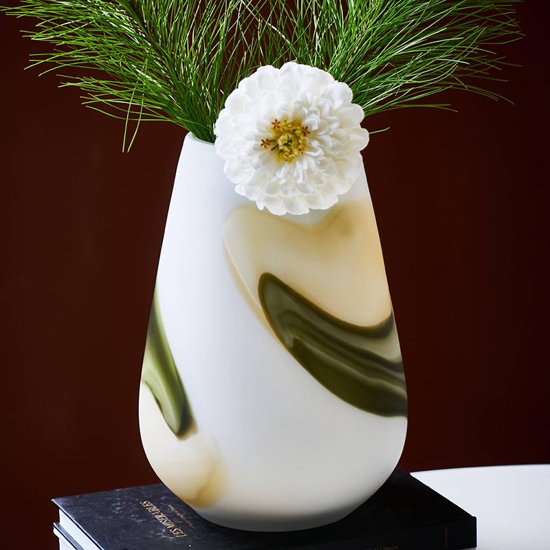 碧轩现代简约磨砂白色透明玻璃花瓶 水培插花花器工艺品家居摆件