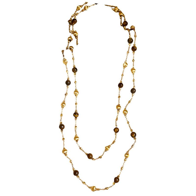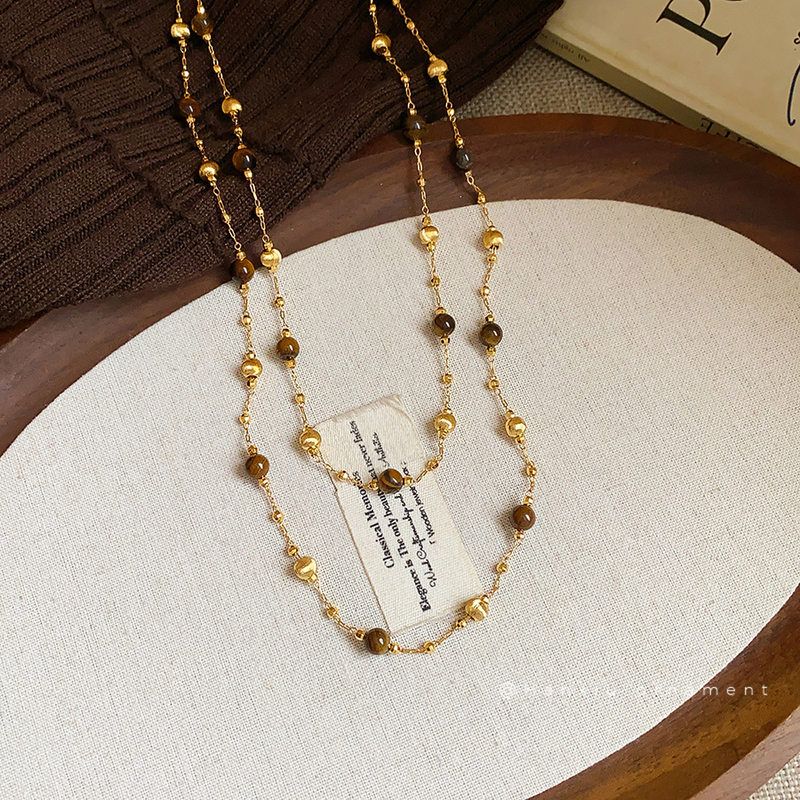项链虎眼石串珠复古真金美拉德饰品电镀项饰毛衣链高级感轻奢叠带