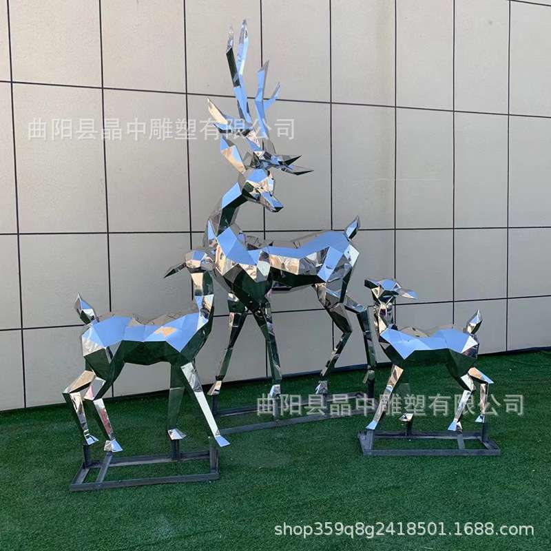 厂家镜面不锈钢鹿雕塑几何切面鹿金属铁艺编织镂空发光园林景观