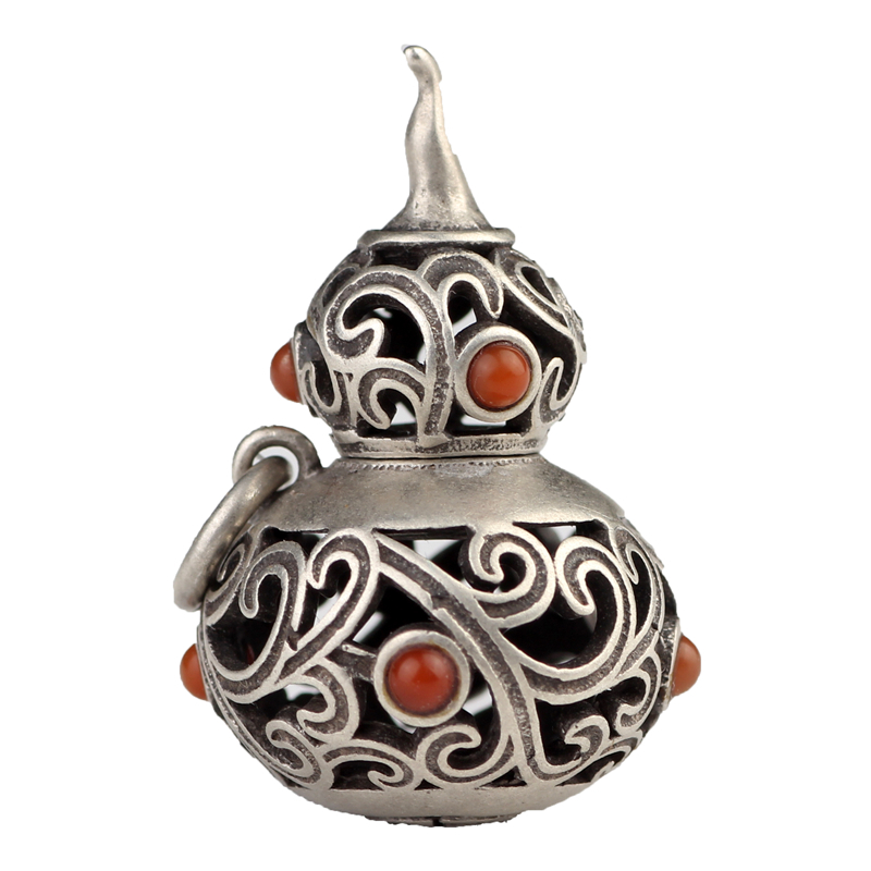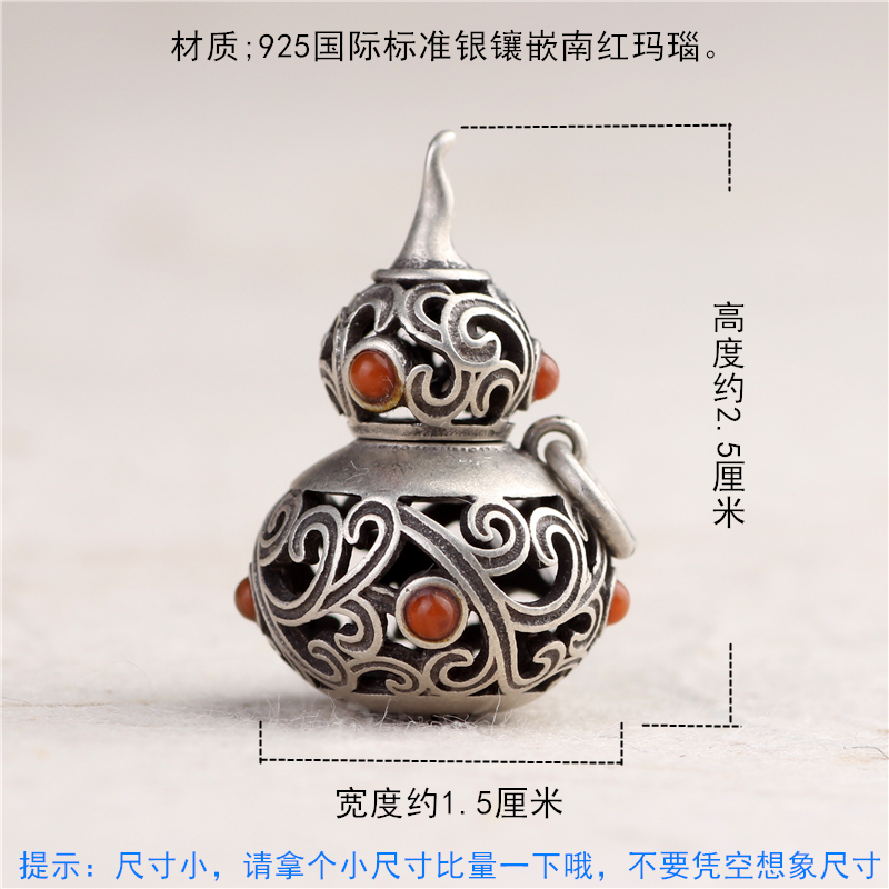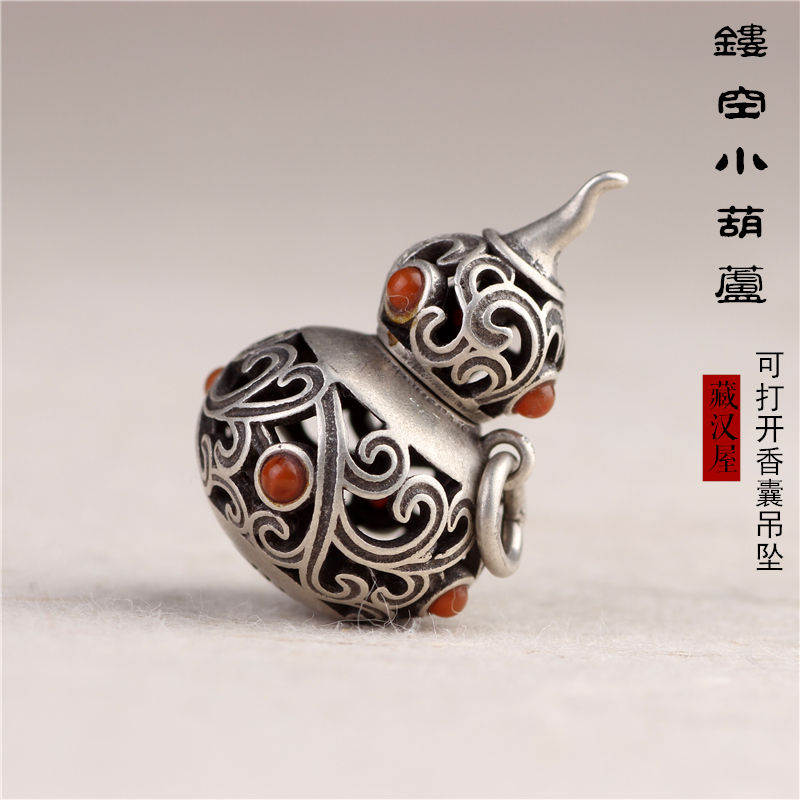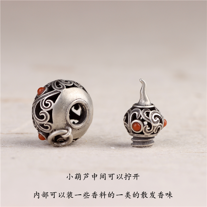 纯银可打开镂空小葫芦香囊复古个性项链吊坠手机钥匙挂件男女