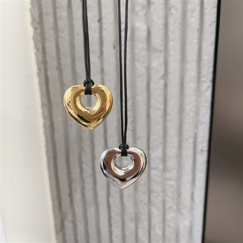 简约不锈钢黑色蜡绳镂空爱心吊y坠项链轻奢高级小众长款项链毛衣
