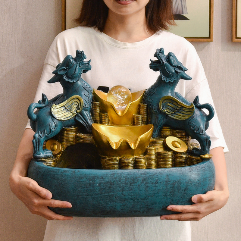 桌面貔貅金蟾招财流水轮聚宝盆风生水起摆件店铺开业礼物财源滚滚