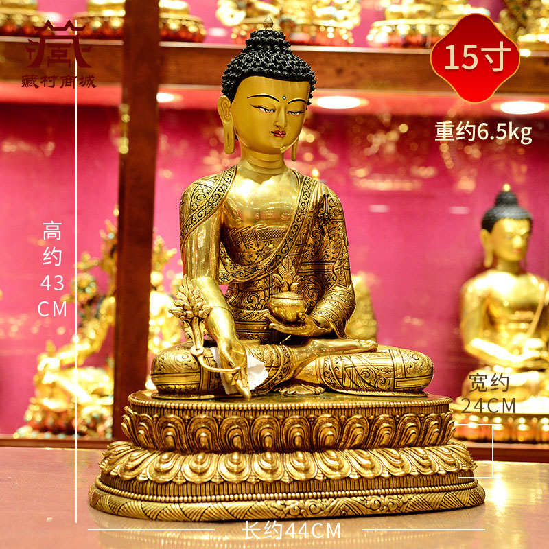 藏村尼泊尔进口《药师佛》释迦族手工《琉璃光如来》桌面铜像摆件