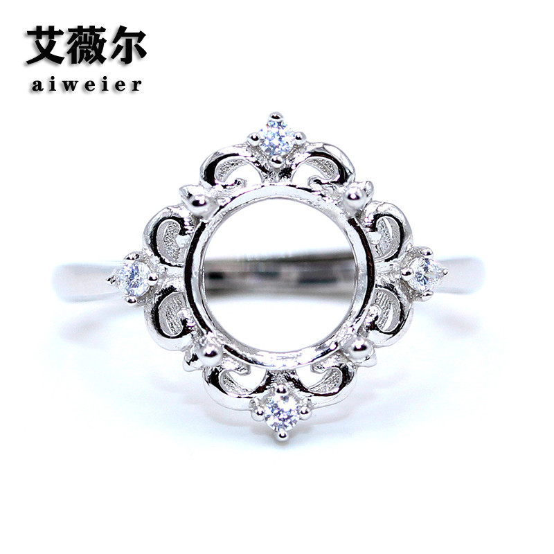 S925纯银精工戒指空托加工镶嵌圆形戒托定制18K金5*5 6*6 7*7 8*8