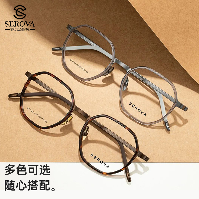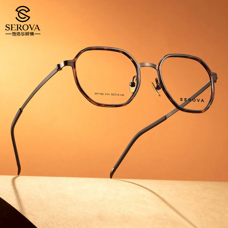 施洛华钛架多边形复古眼镜男超薄玳瑁高级感镜框女可配近视SP1183