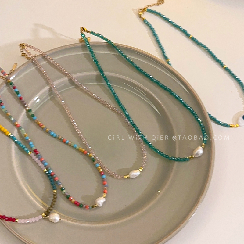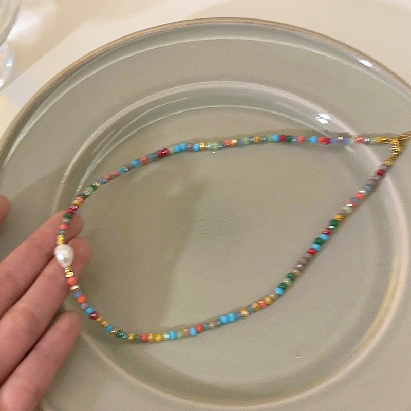 彩色串珠珍珠项链女轻奢小众彩珠配饰品2025新款夏天多巴胺锁骨链