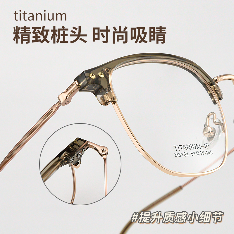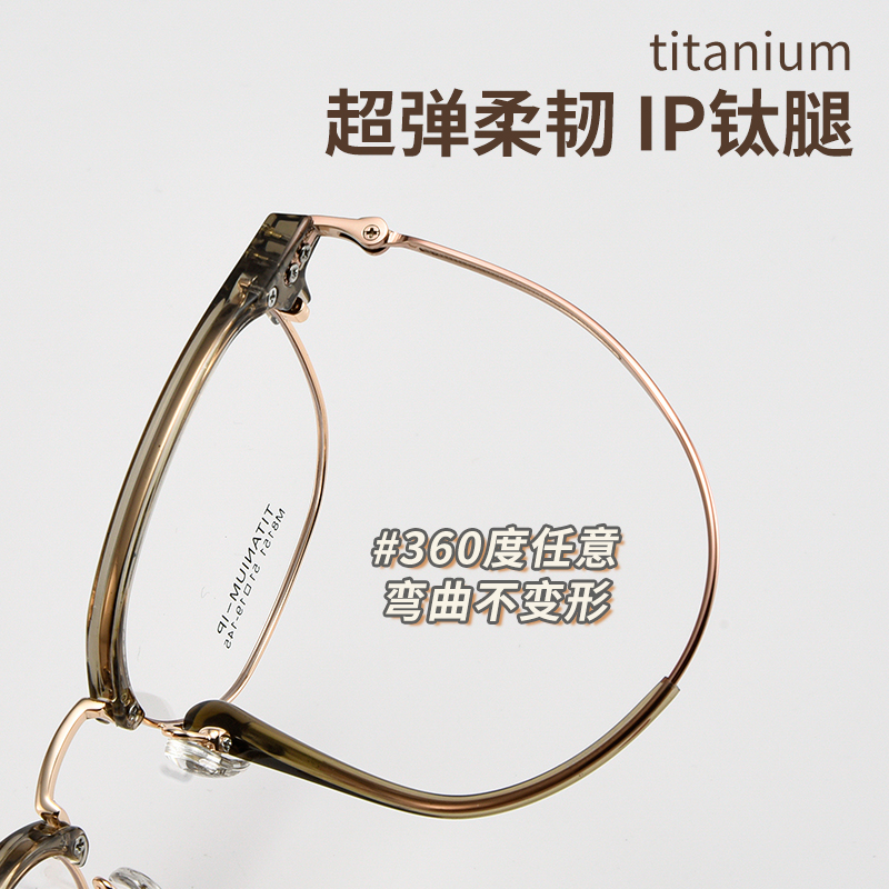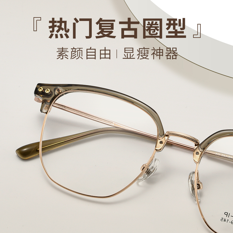 纯钛高级感半框眼镜女防蓝光近视眼镜框男超轻可配度数素颜橄榄绿