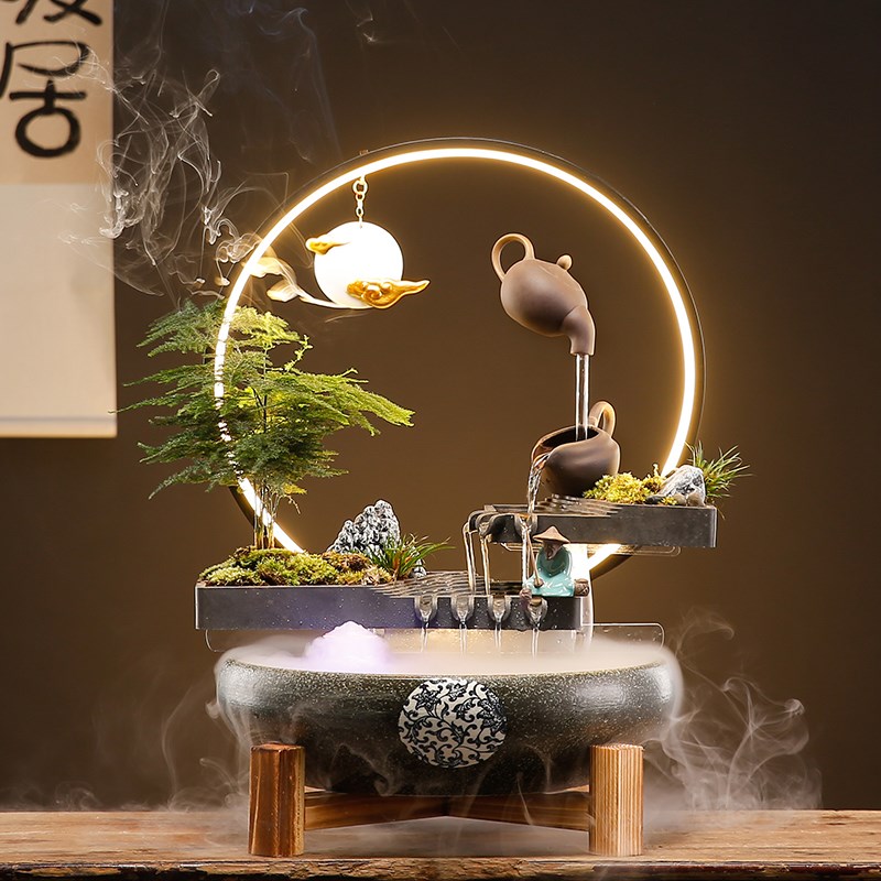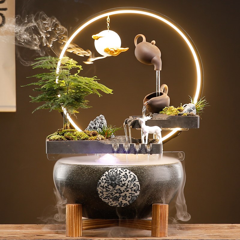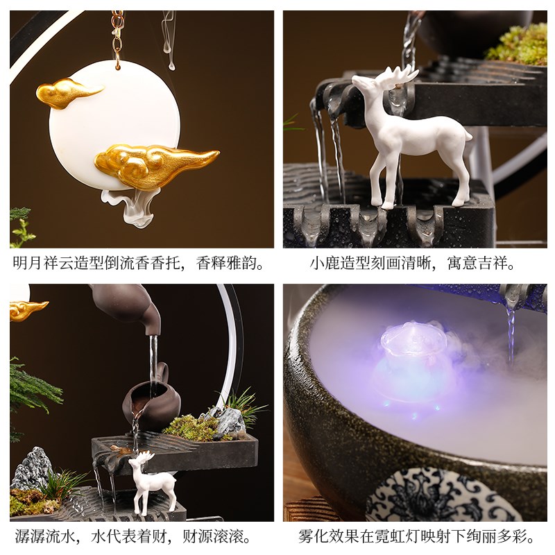 新中式招财流水生财摆件陶瓷鱼缸循环水客厅桌面店铺开业乔迁礼品