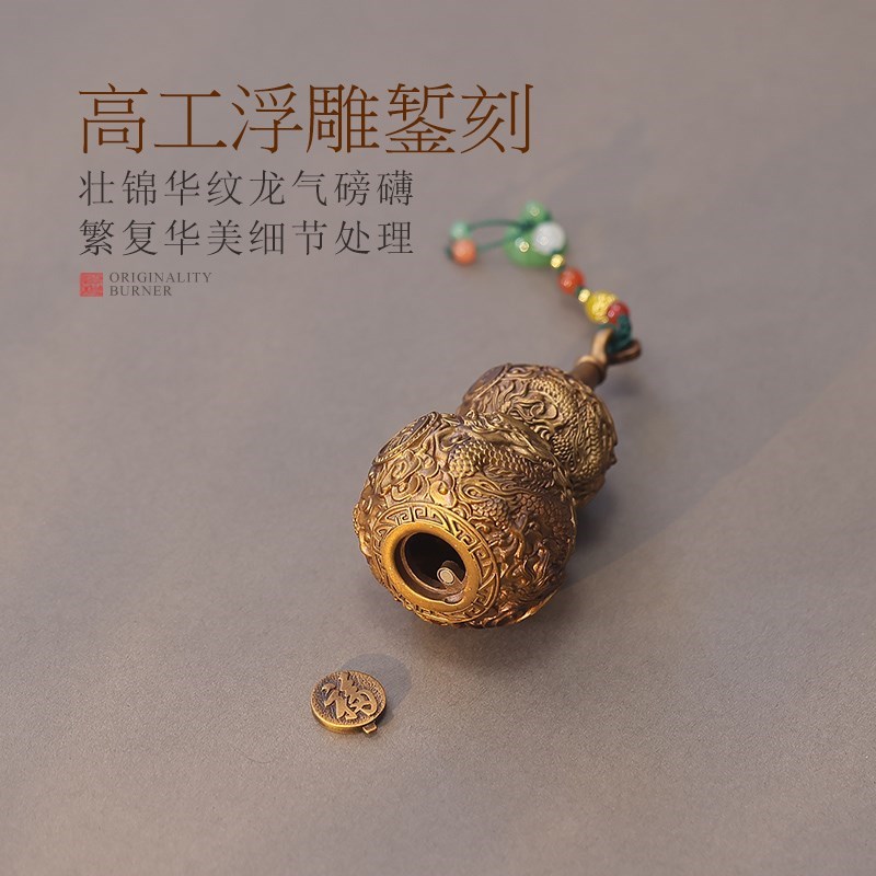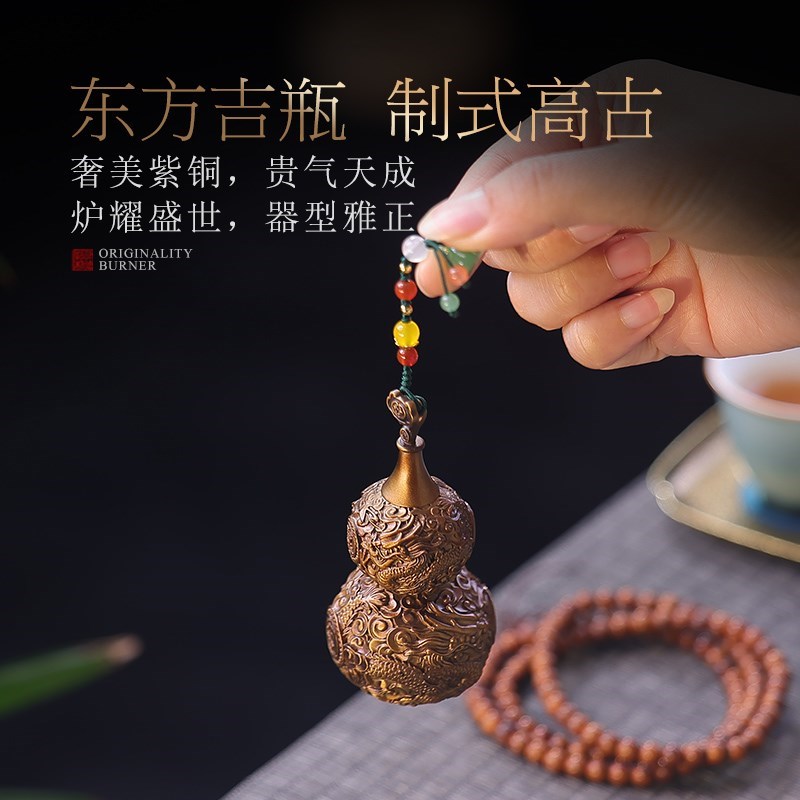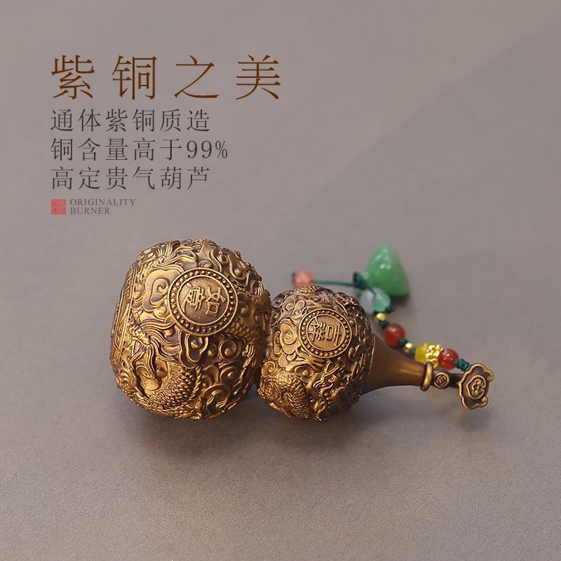 纯铜小葫芦桌面摆j件紫铜车载挂件福禄龙纹浮雕手把件家居客厅装