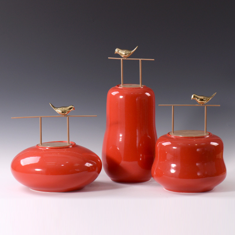 新中式红色陶瓷罐摆件客厅玄关柜酒柜办公桌禅意家居电视柜装饰品