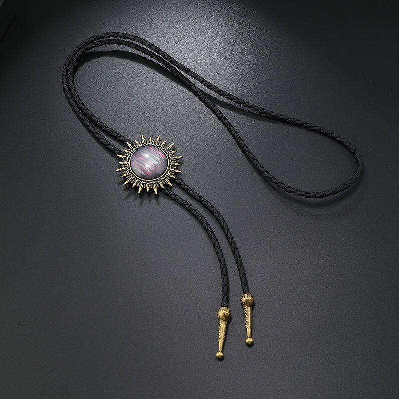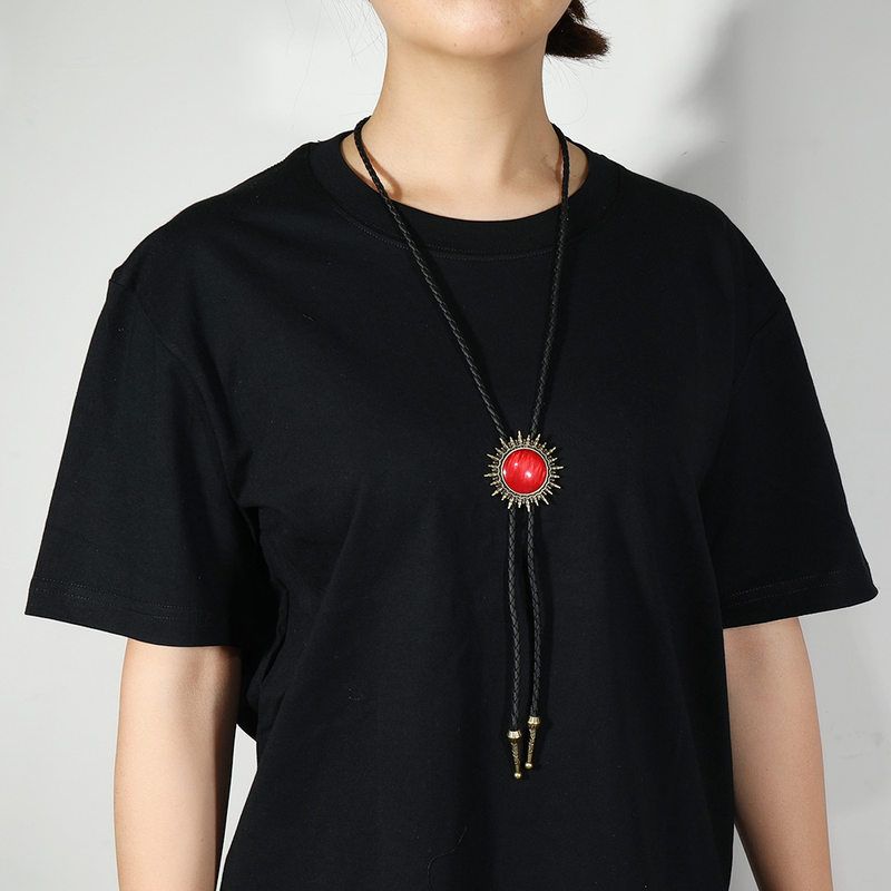 复古红石太阳皮绳毛衣链长款个性t恤配饰项链男女衬衫领口挂件潮