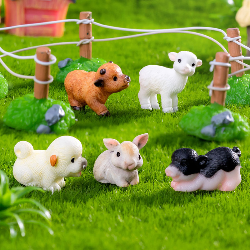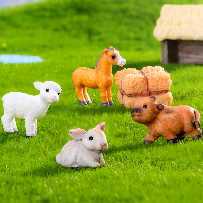 微景观创意可爱小动物摆件森林兔子小牛小马小羊小猪小狗桌面摆设