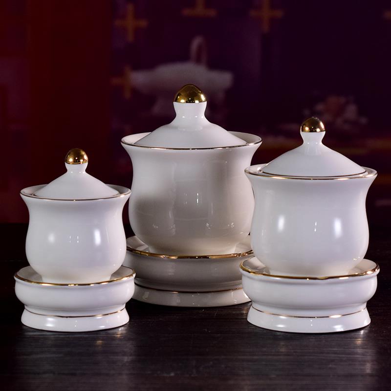家用供佛佛前白色陶瓷描金供具香炉水果供盘圣水杯花瓶香桶筒烛台