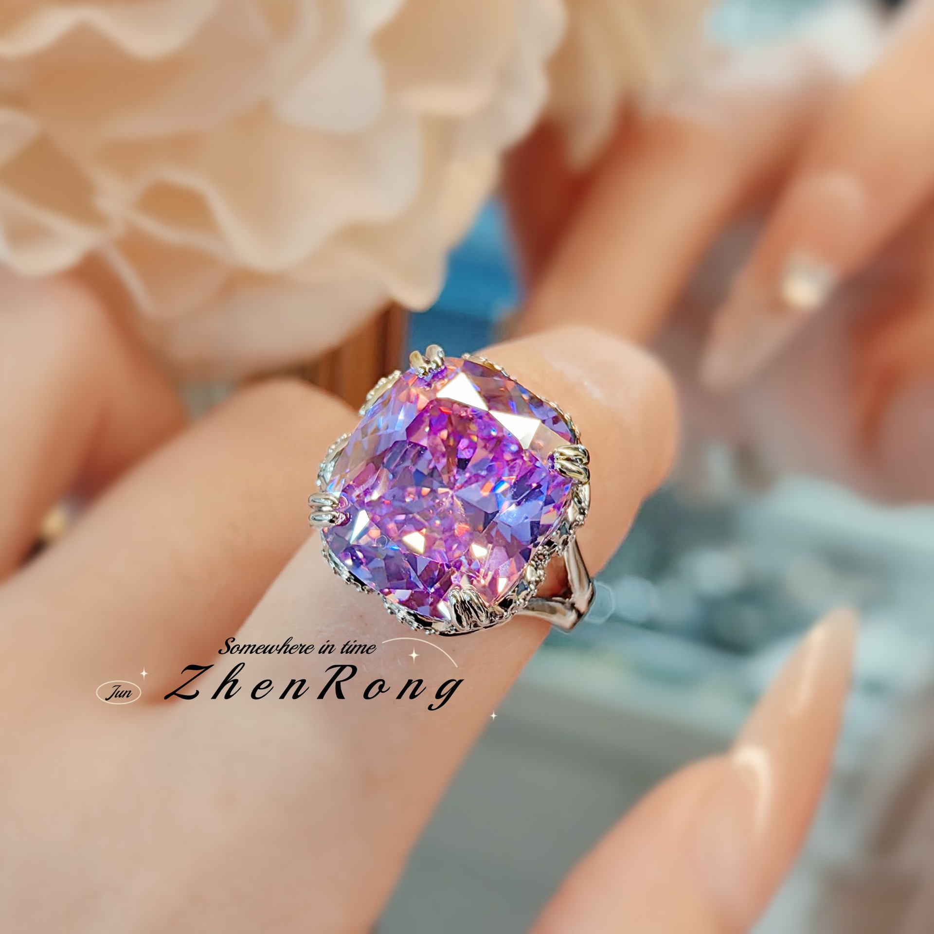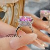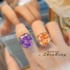 Young轻奢帕帕拉恰冰花切戒指镶紫锂辉高碳钻开口甜美复古气质女