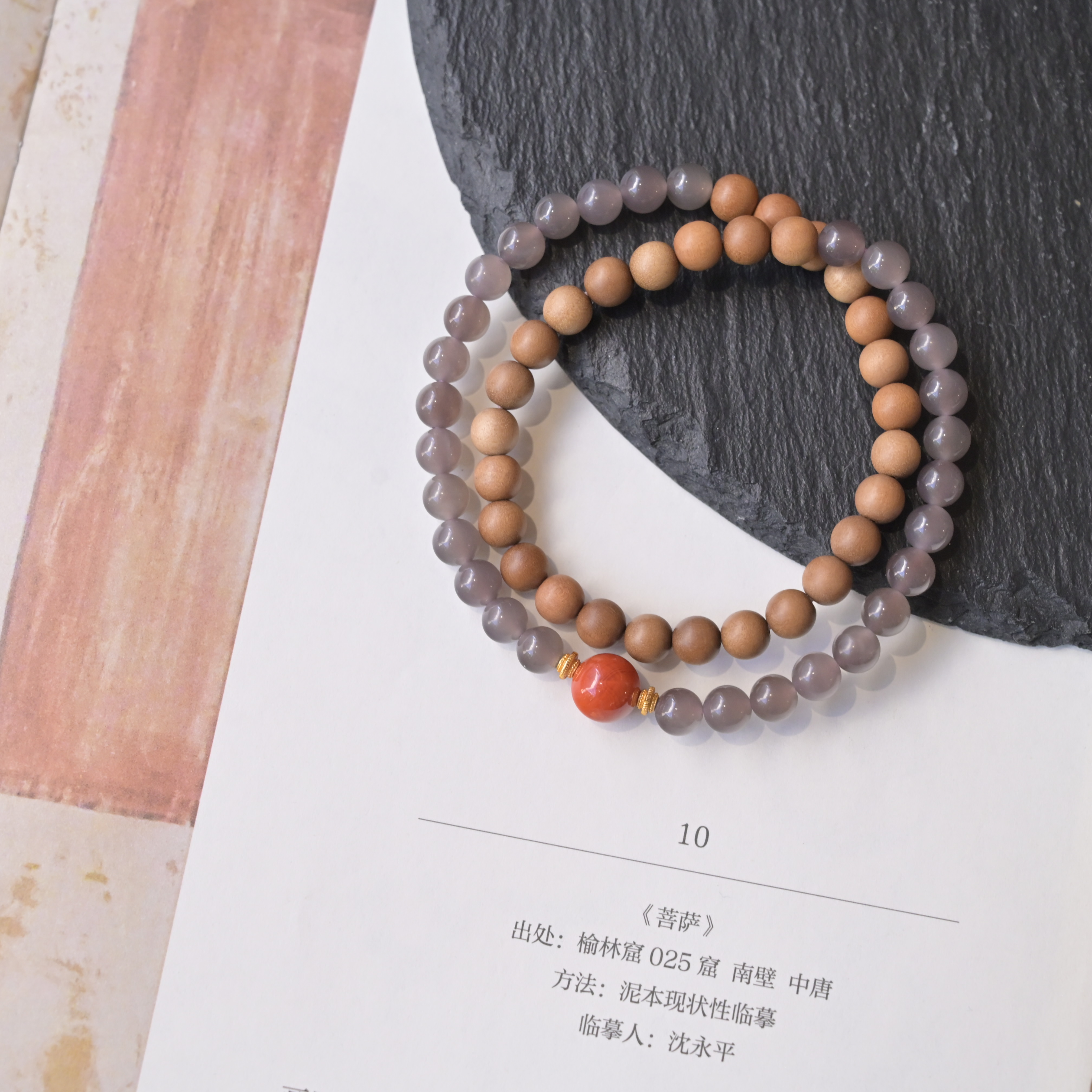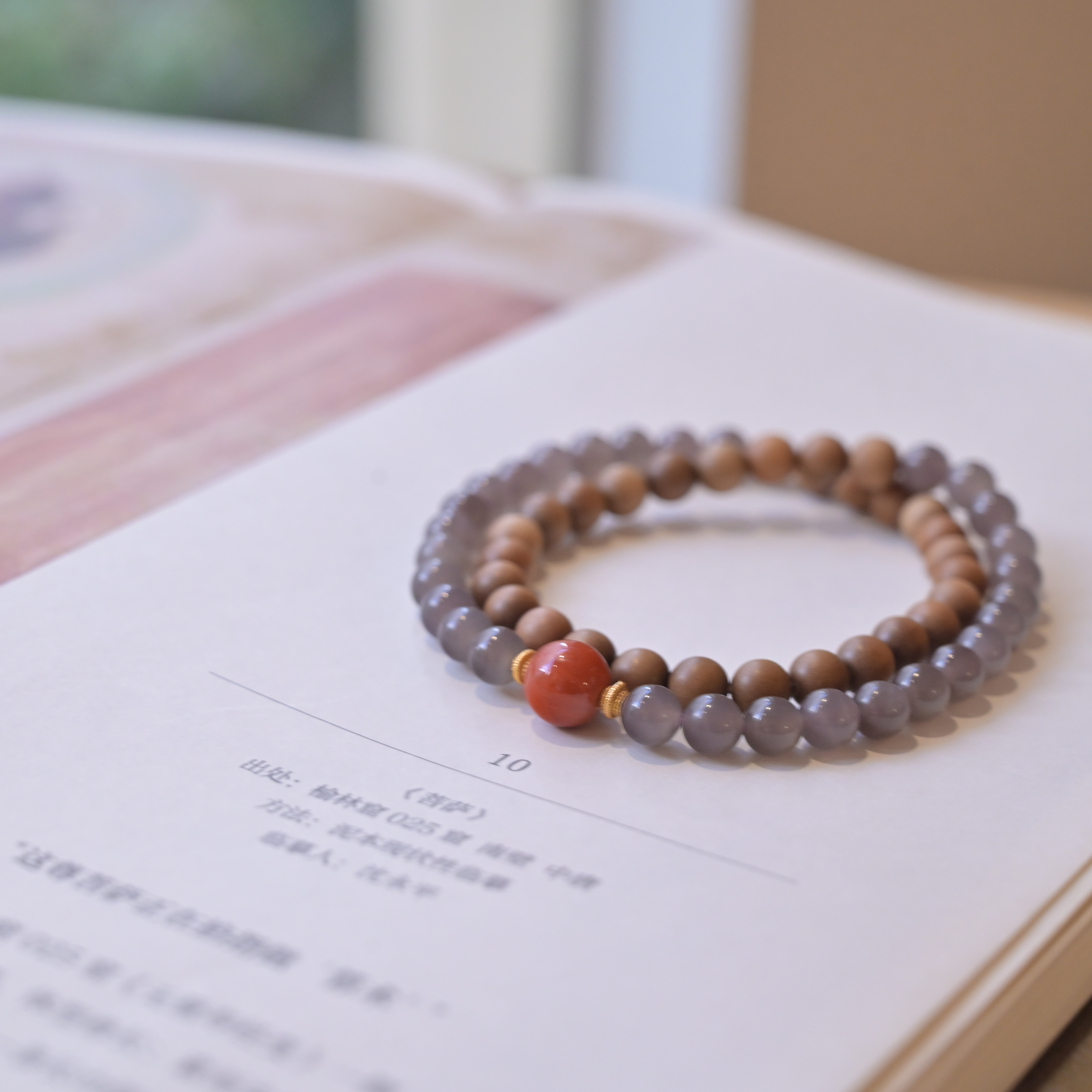 一念·「夏昙」国风设计款和田玉烟紫手串6mm