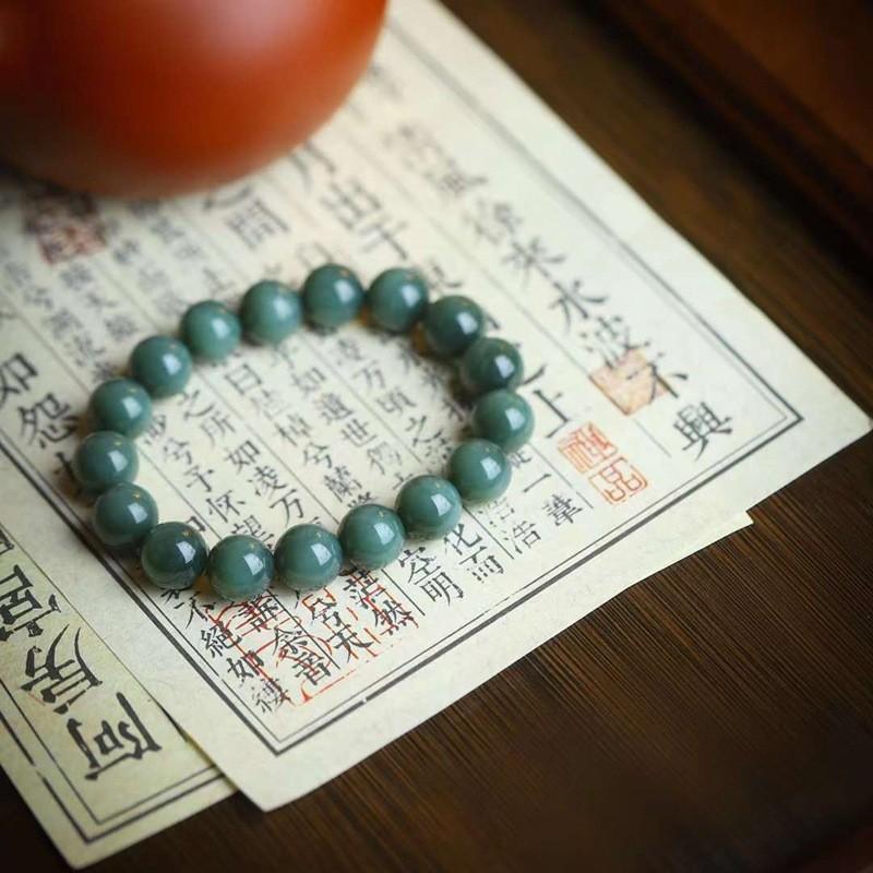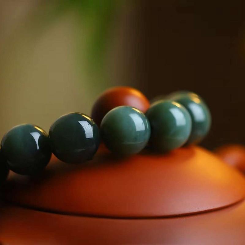 天然和田玉玉器工厂店俄料碧玉老料黑猫眼珠圆玉润玉石手串手链