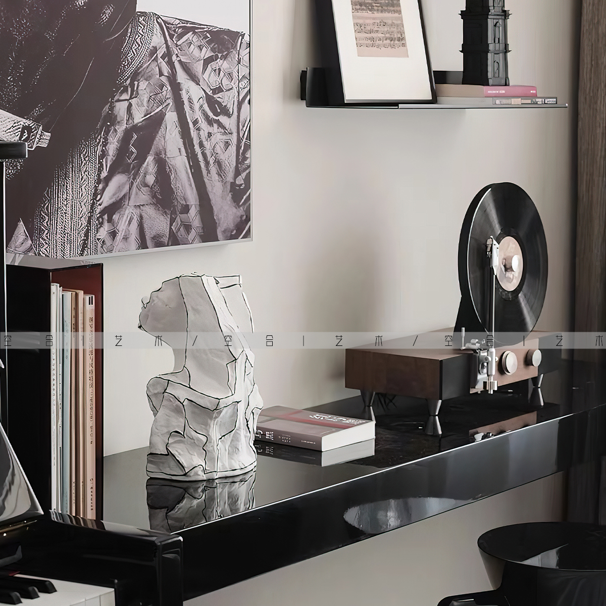 空合 现代简约黑胶唱片机白色抽象摆件 样板间售楼处酒店家居饰品