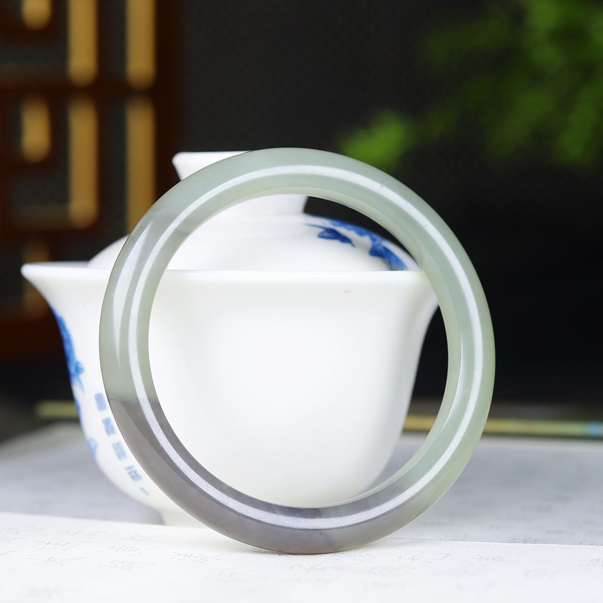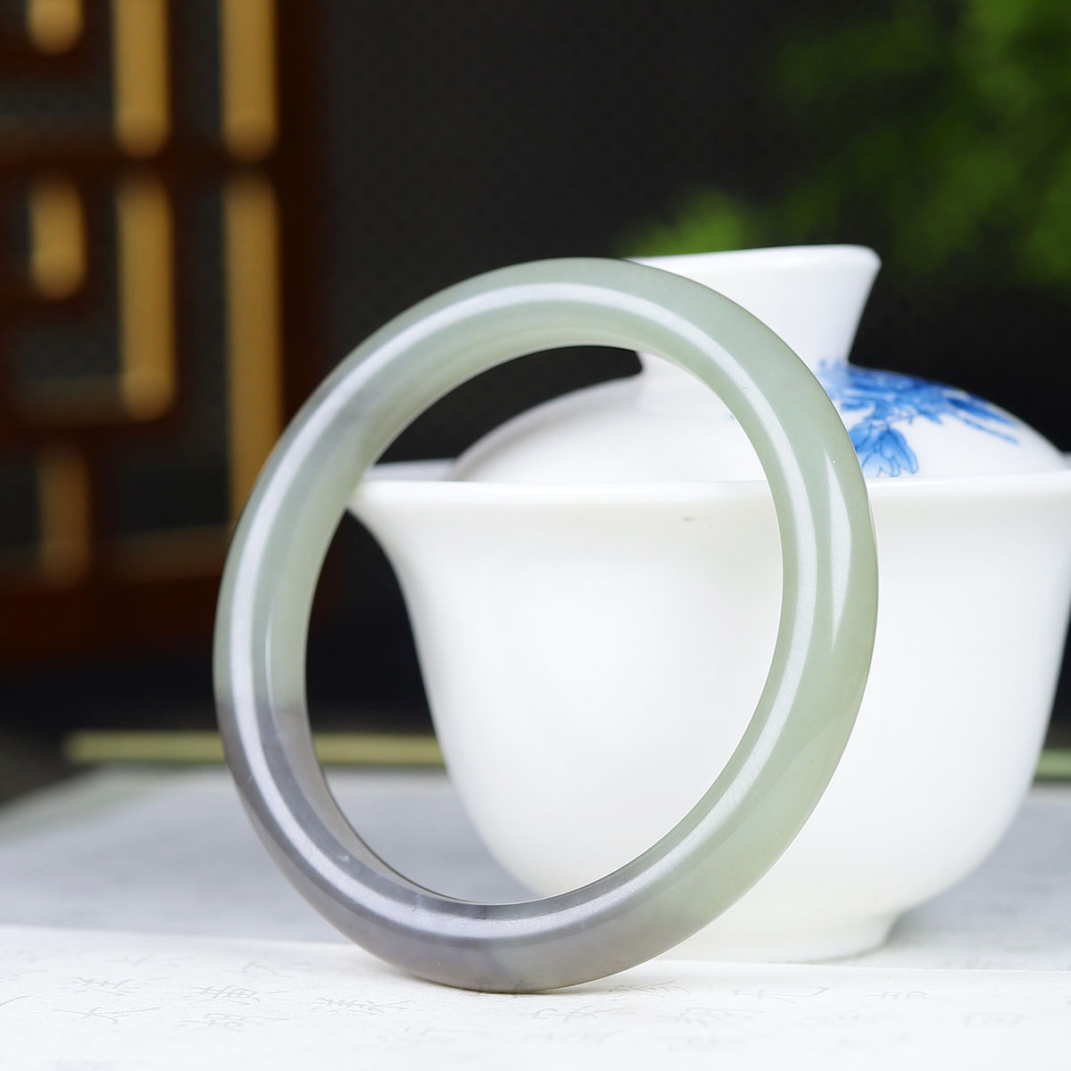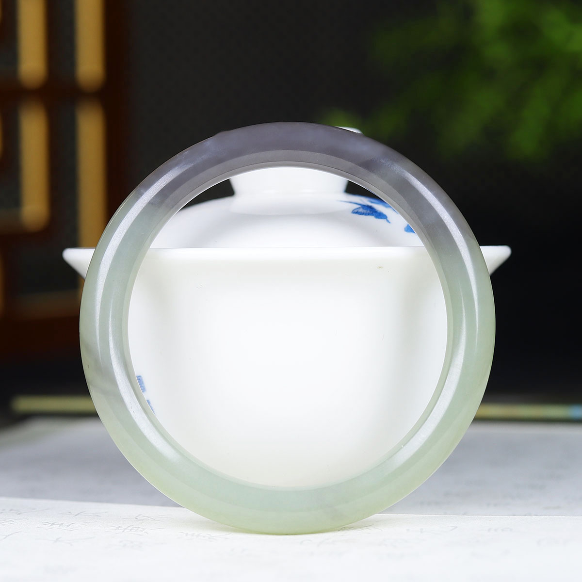 (古晨珠宝)和田玉烟紫翠青手镯女款玉镯腕间优雅33g53mm