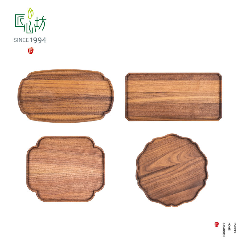 匠心坊中式茶室装饰实木茶盘客厅玄关钥匙收纳文房多功能托盘摆件