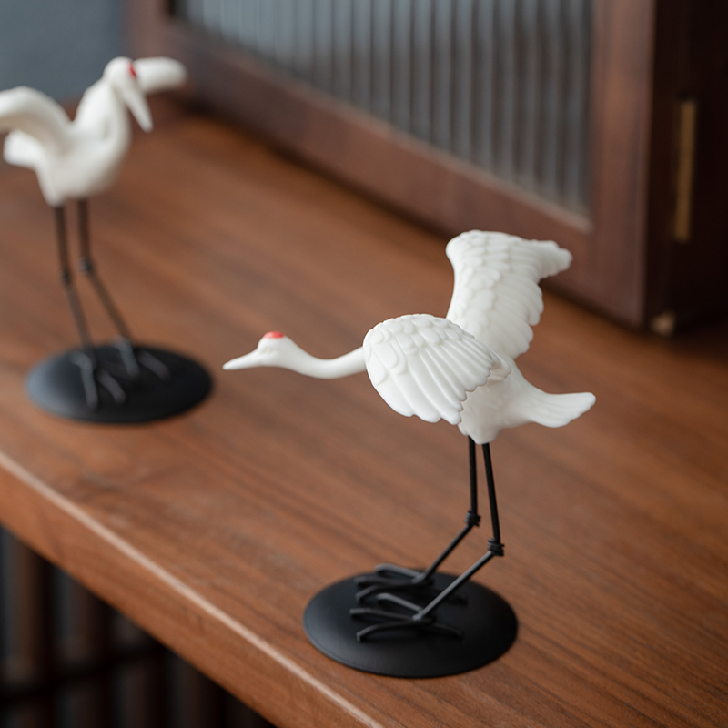 德化陶瓷仙鹤动物摆件白瓷装饰工艺品车载客厅电视柜桌面家居创意