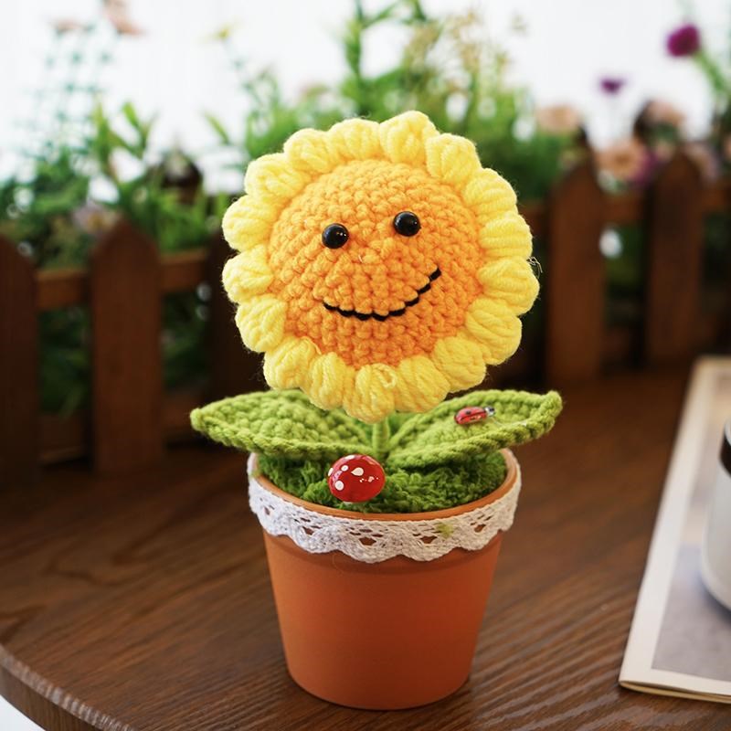 毛线钩织新年家居装饰摆件小盆栽办公室桌面向日葵生日礼物装饰品