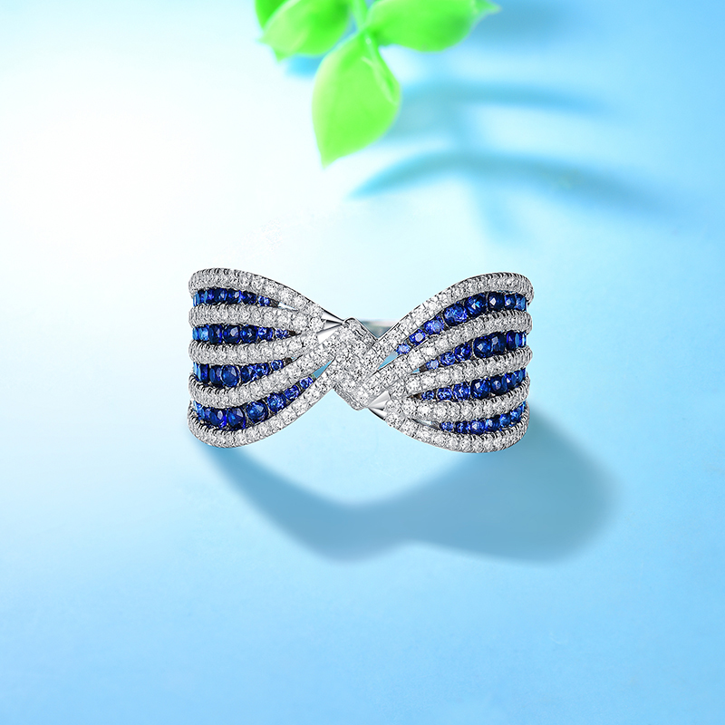 卓蝶珠宝璀璨星河镶嵌合成蓝宝石戒指仿钻戒新品宽版仿蓝宝石排戒