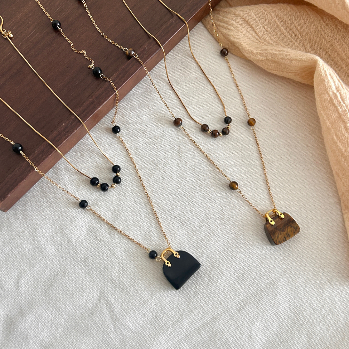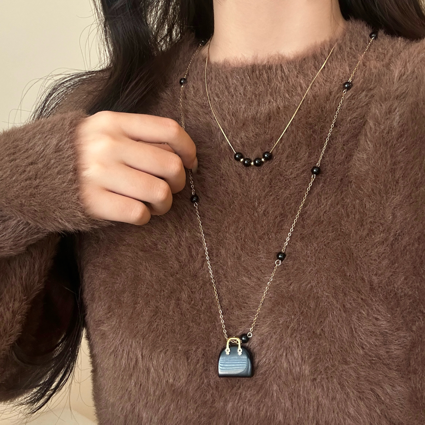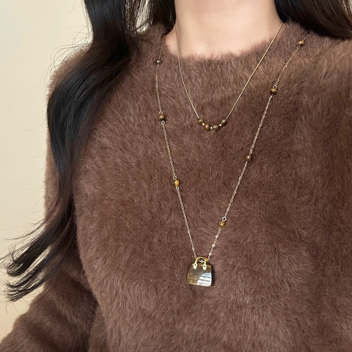 虎眼石串珠包包项链女轻奢高级感气质毛衣链时尚百搭秋冬卫衣链
