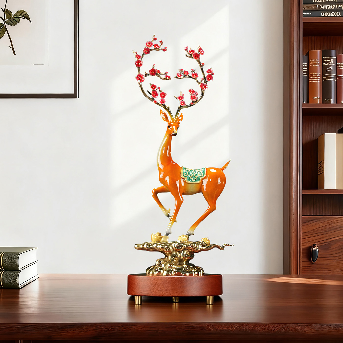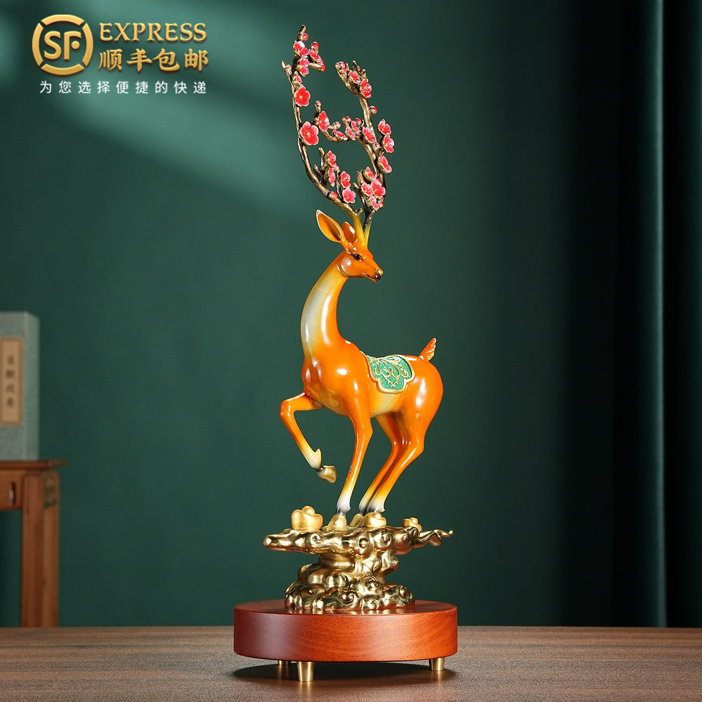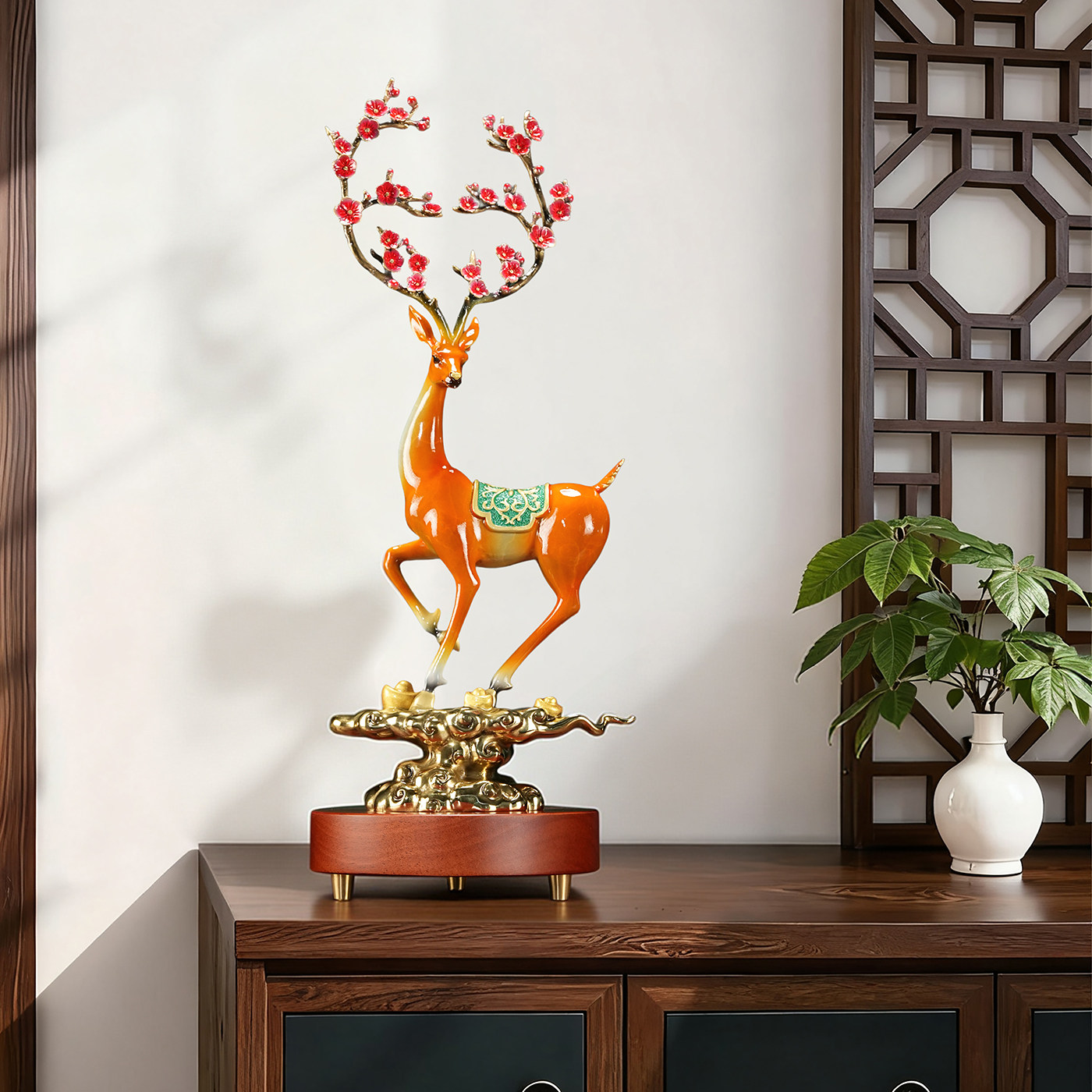 一路升华铜梅花鹿摆件办公室客厅玄关招财装饰乔迁新居开业礼品