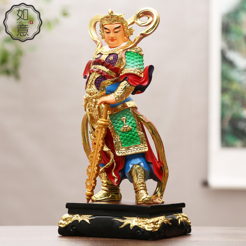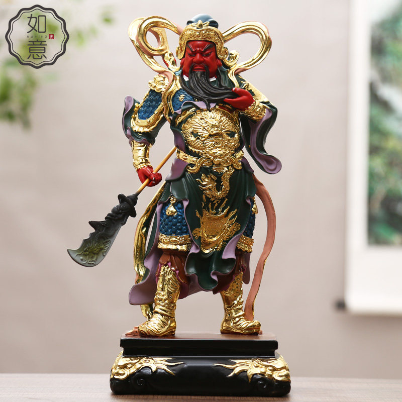 树脂鎏金佛像 38cm关公韦陀护法16寸珈蓝神像 敦煌彩关公韦陀菩萨
