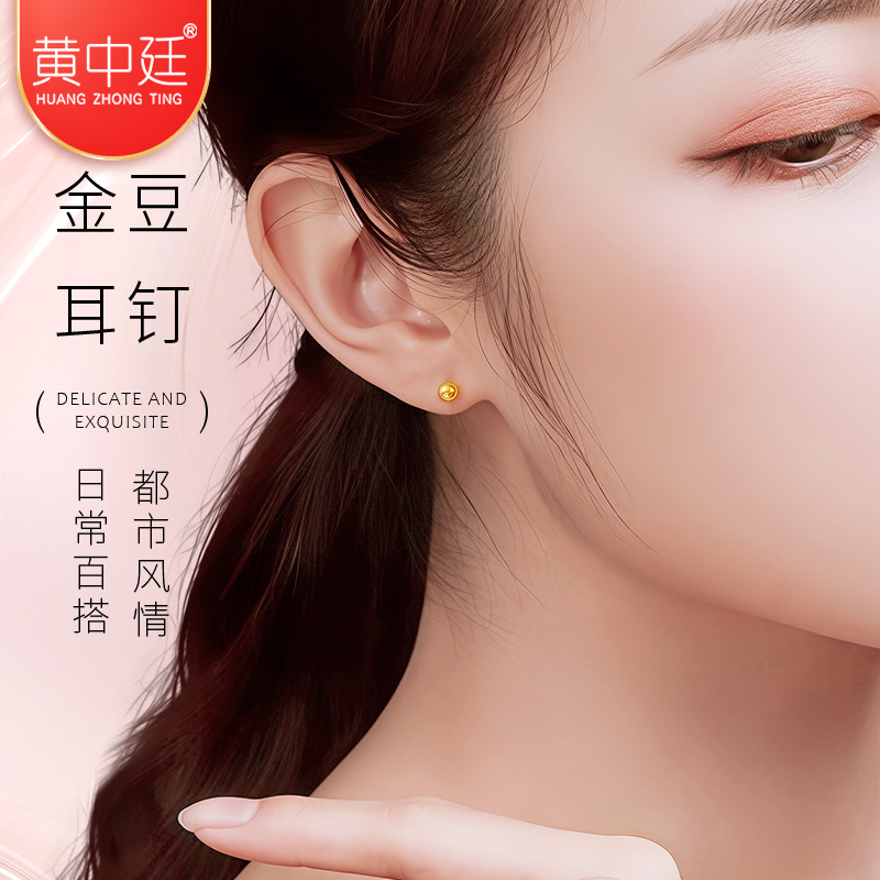 养耳棒黄金小耳钉999足金迷你耳钉新款女纯金耳针耳环豆豆珠子