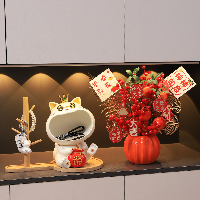 福袋招财猫入户进门玄关钥匙收纳摆件餐边鞋柜装饰品客厅家居摆设