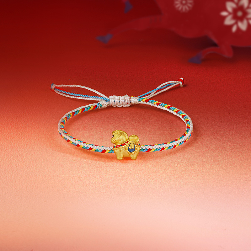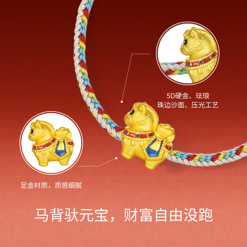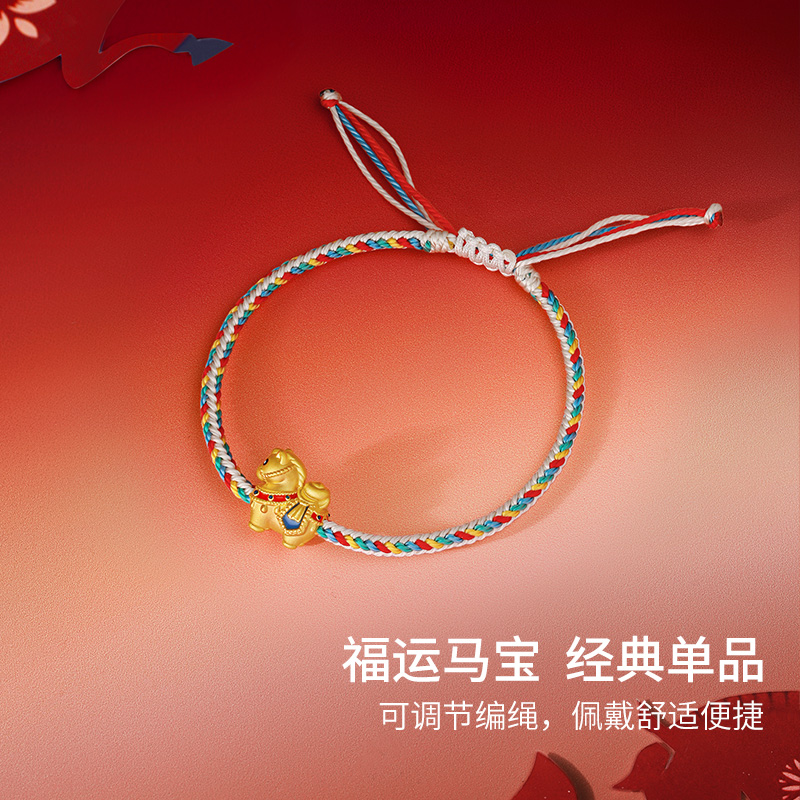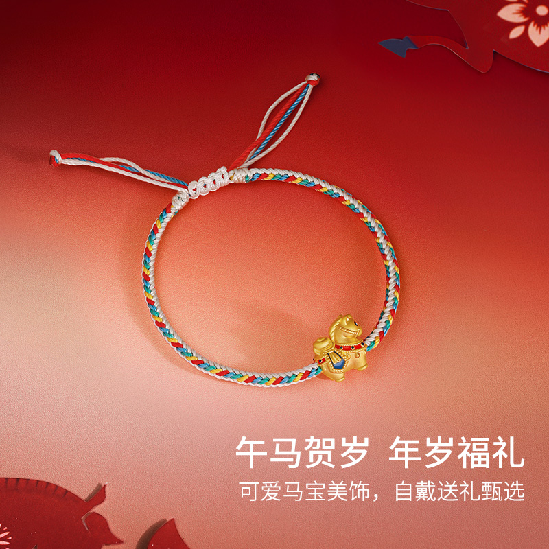 周六福黄金5d硬金手绳女款编绳生肖马献宝福马手饰定价圣诞礼物