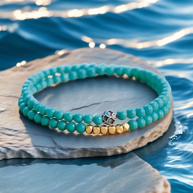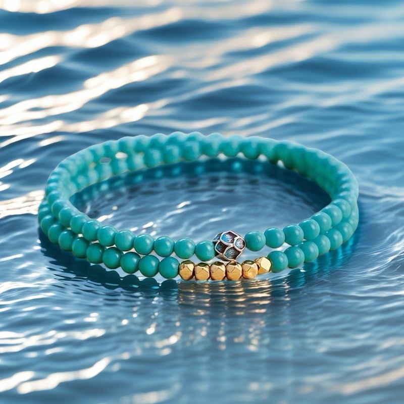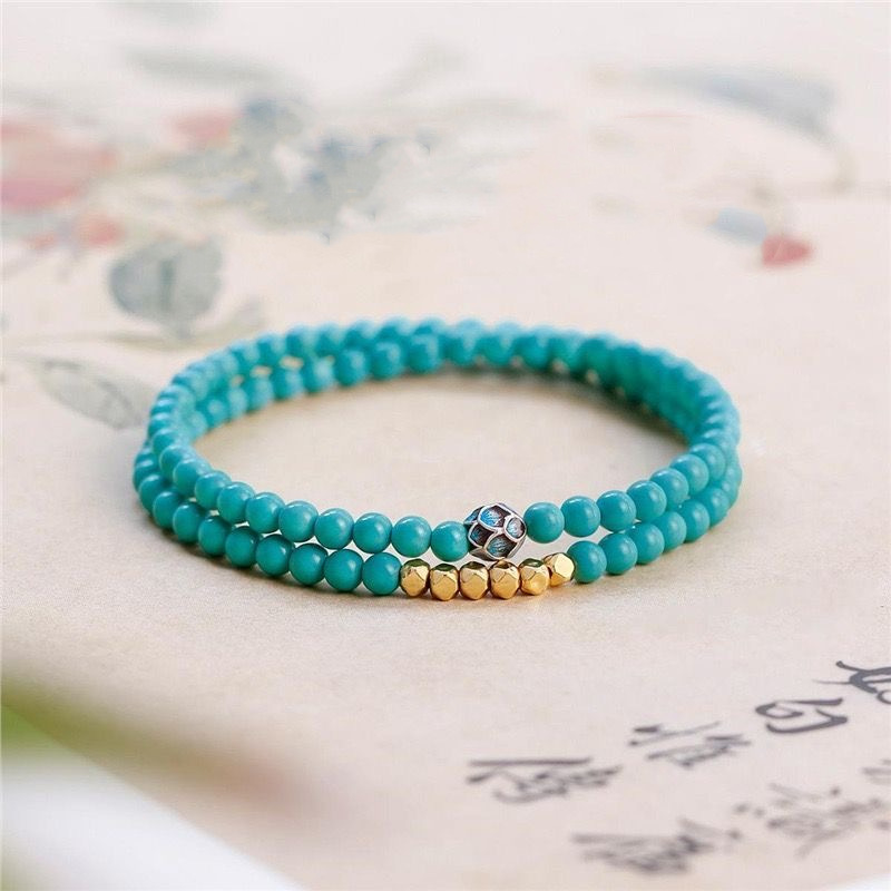文玩天然绿松石手串古风手链女串珠玉石双圈叠戴散珠蓝绿色南星