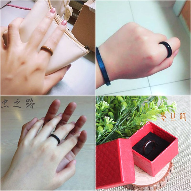 当前位置:首页>商品详情>红木檀木戒指乌木尾戒木s黑绿紫檀木细圆男女学生情侣款对戒忠之