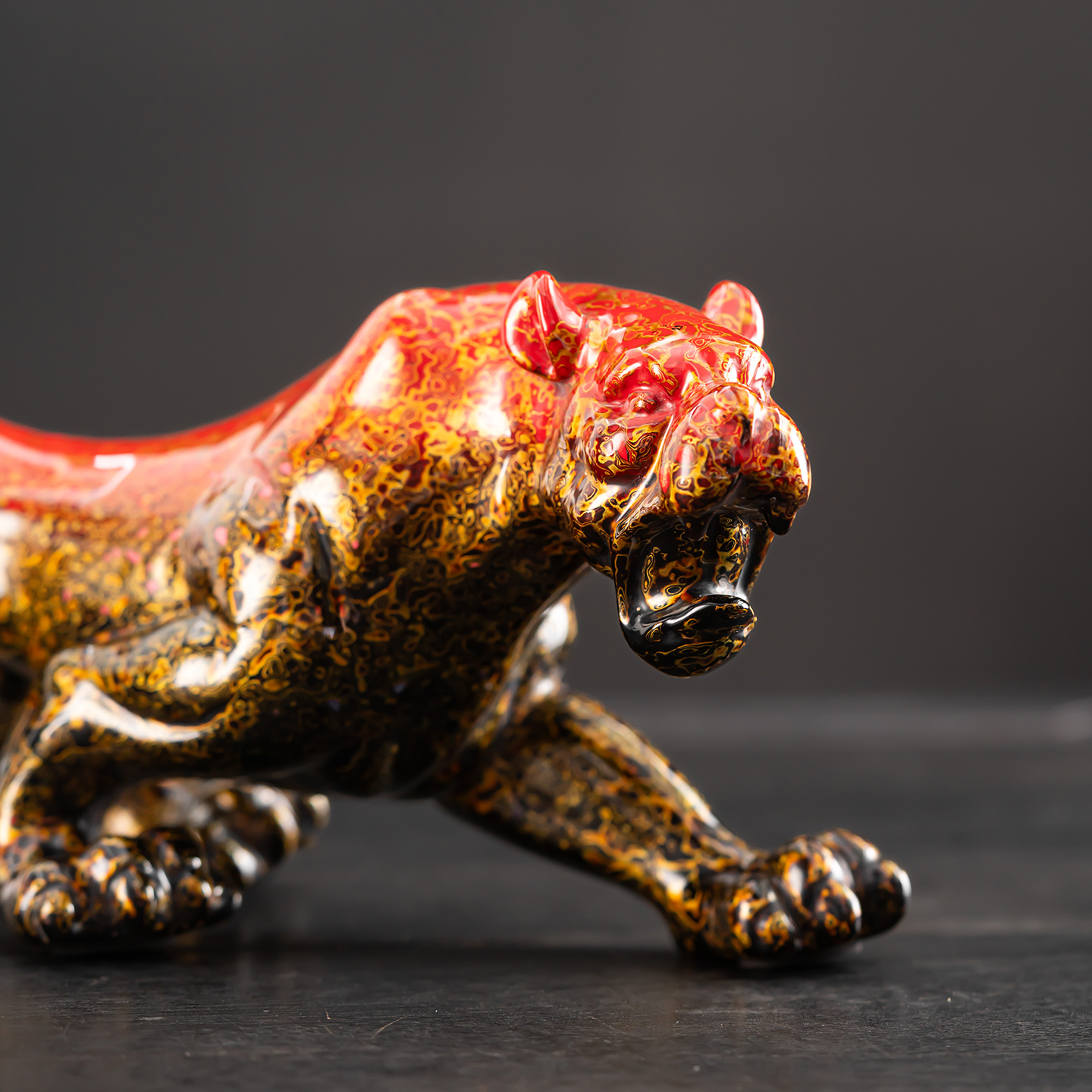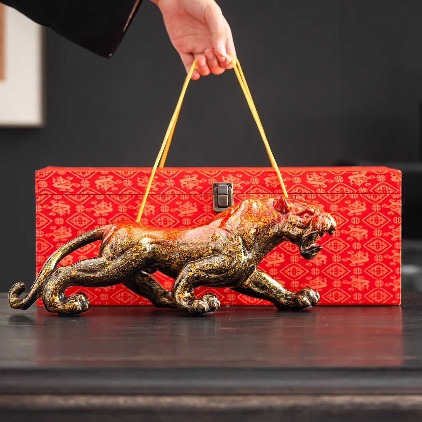 梦南州漆器高端摆件金钱豹纯手工大漆老总办公室开业别墅桌面送礼
