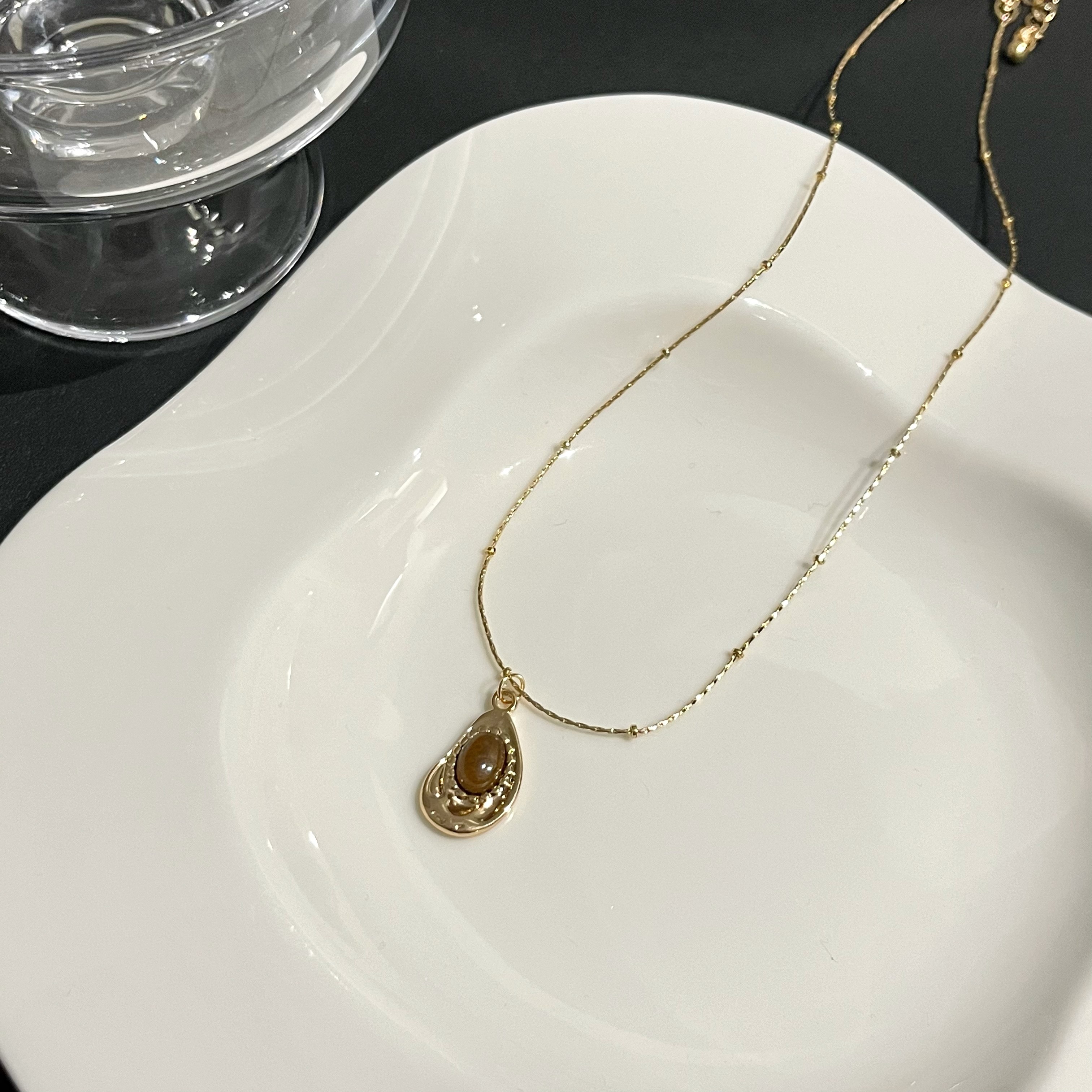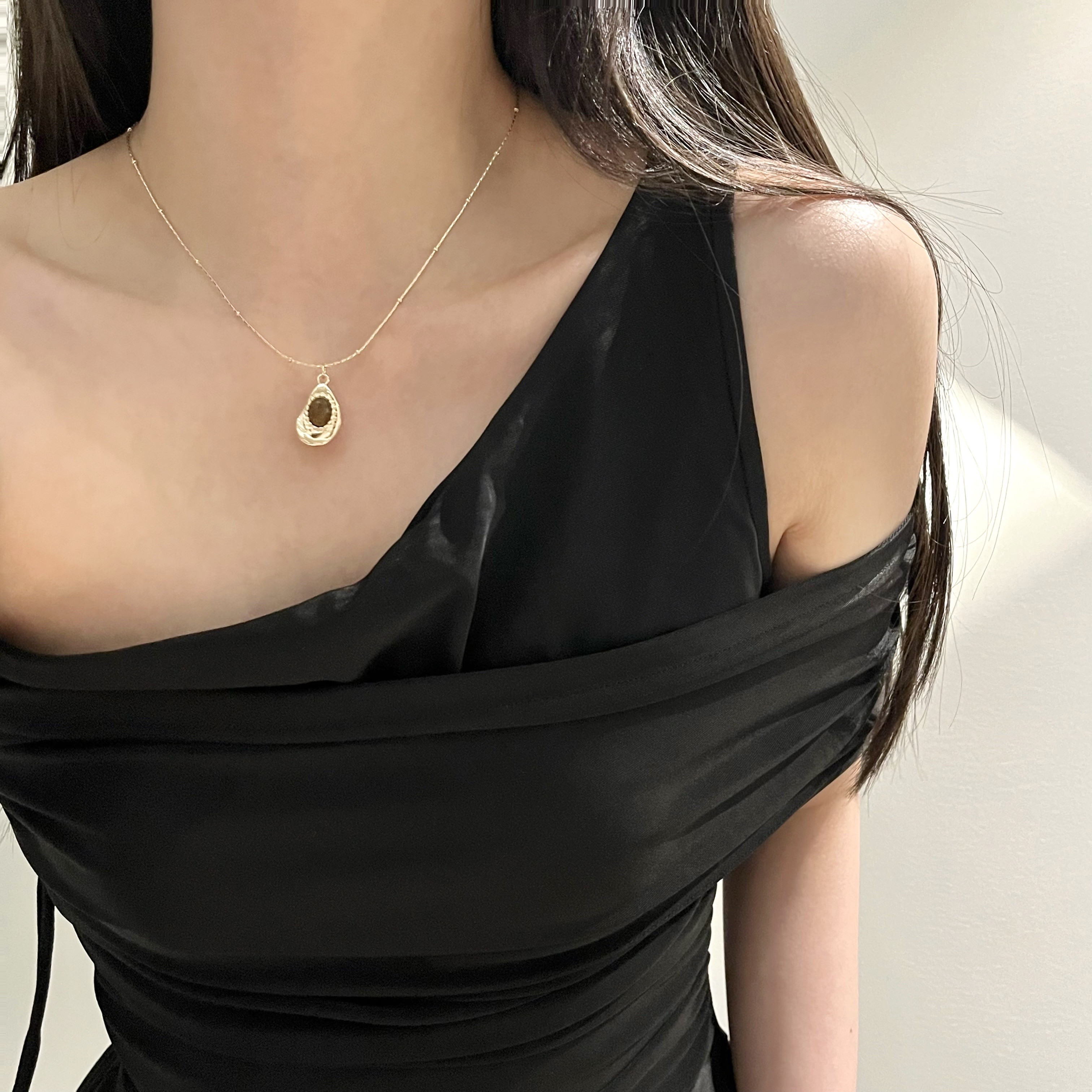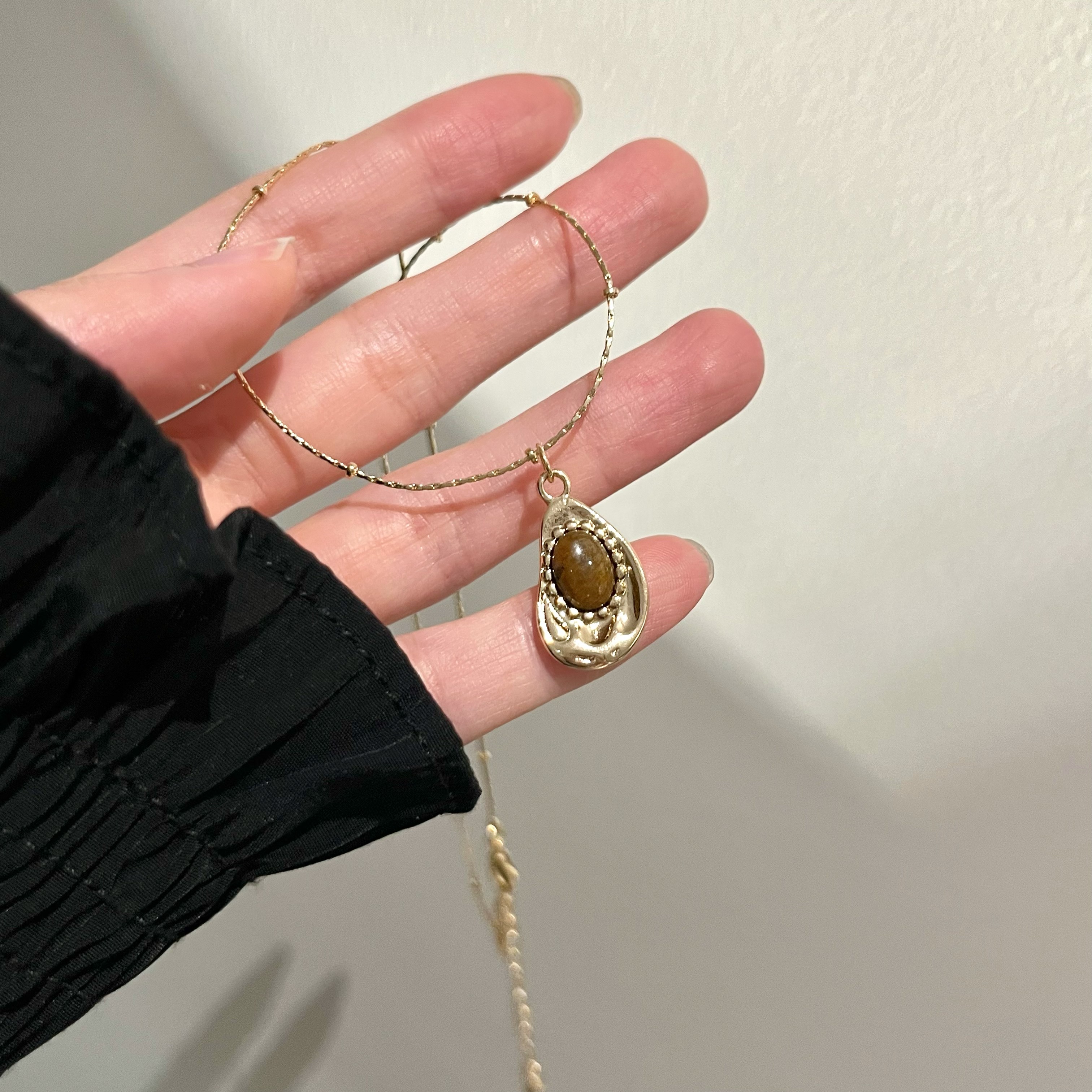 虎眼石吊坠项链女轻奢复古气质百搭锁骨链配饰2024新款爆款毛衣链