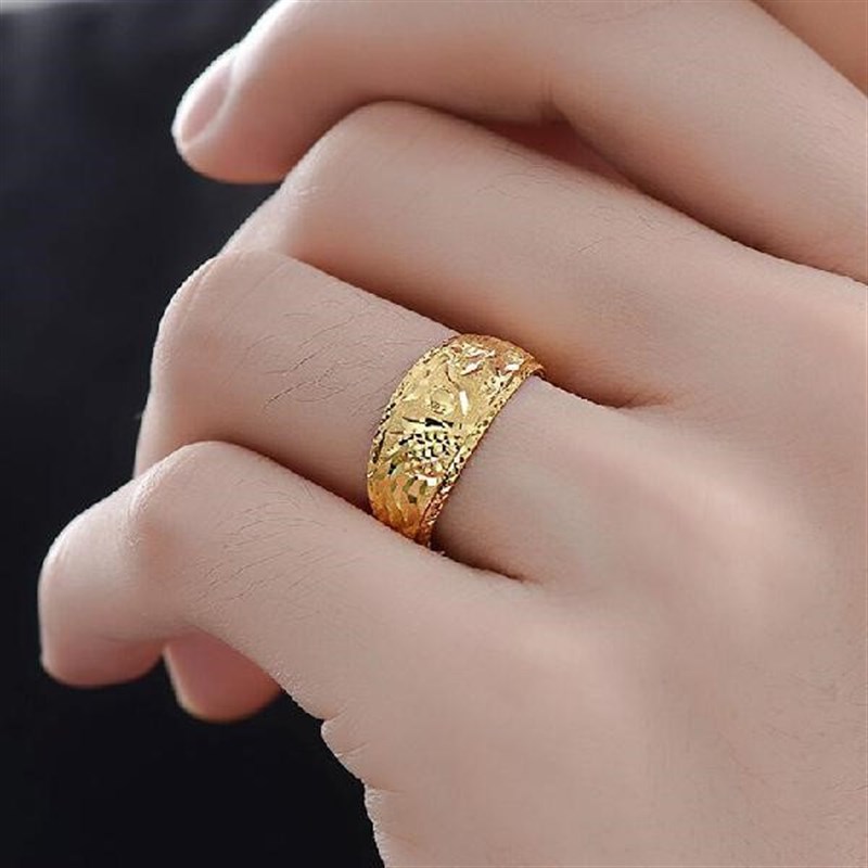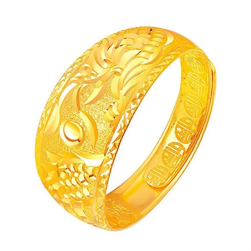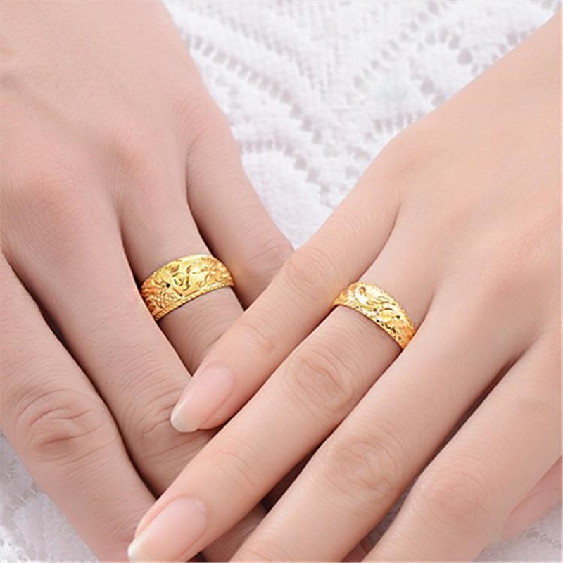 香港免税真金色龙凤情侣戒指对戒E光滑指环复古金男女金戒指