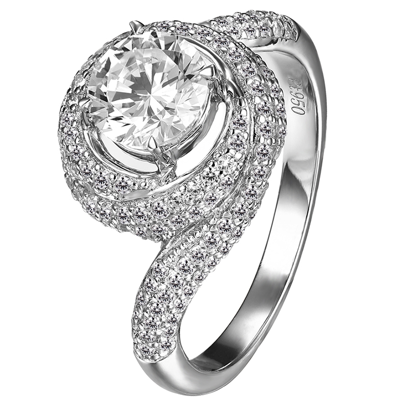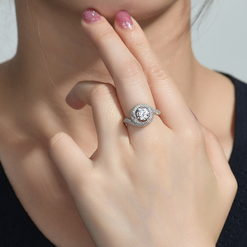 卡家群镶奢华款扭臂交织1克拉莫桑石钻戒三环钻石戒指女求婚戒女
